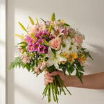Este hermoso ramo clásico, cuidadosamente arreglado con flores de colores pastel, es un regalo elegante y sofisticado. Cada detalle ha sido pensado para ofrecer un regalo verdaderamente único y cautivador. Este ramo es perfecto para cualquier ocasión, desde cumpleaños y aniversarios hasta felicitaciones y agradecimientos. Un toque de suavidad y ternura, este regalo seguro que iluminará el día de cualquier persona.