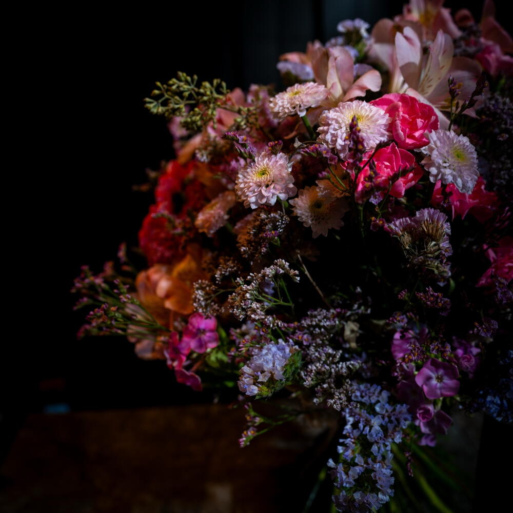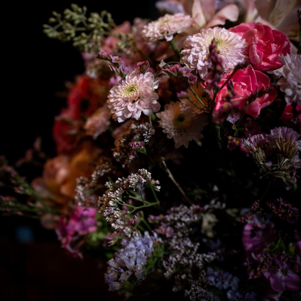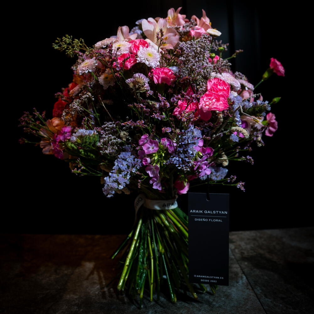 Statice - 8 ud. Limonium - 5 ud. Alstroemeria - 3 ud. clavel - 5 ud. crisantema - 3 ud.