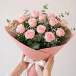 Ramo de rosas rosas fresco y equilibrado con una combinación de flores en tonos suaves y elegantes, perfecto para sorprender sin caer en lo típico. La mezcla de texturas y volúmenes crea un diseño ligero pero con presencia, ideal para cualquier ocasión: cumpleaños, agradecimientos o simplemente porque sí. Está elaborado con flor de temporada seleccionada a mano, lo que hace que cada ramo sea único. Puede presentar ligeras variaciones según disponibilidad, manteniendo siempre la armonía de colores y estilo. Un ramo versátil, bonito y con ese punto especial que marca la diferencia.