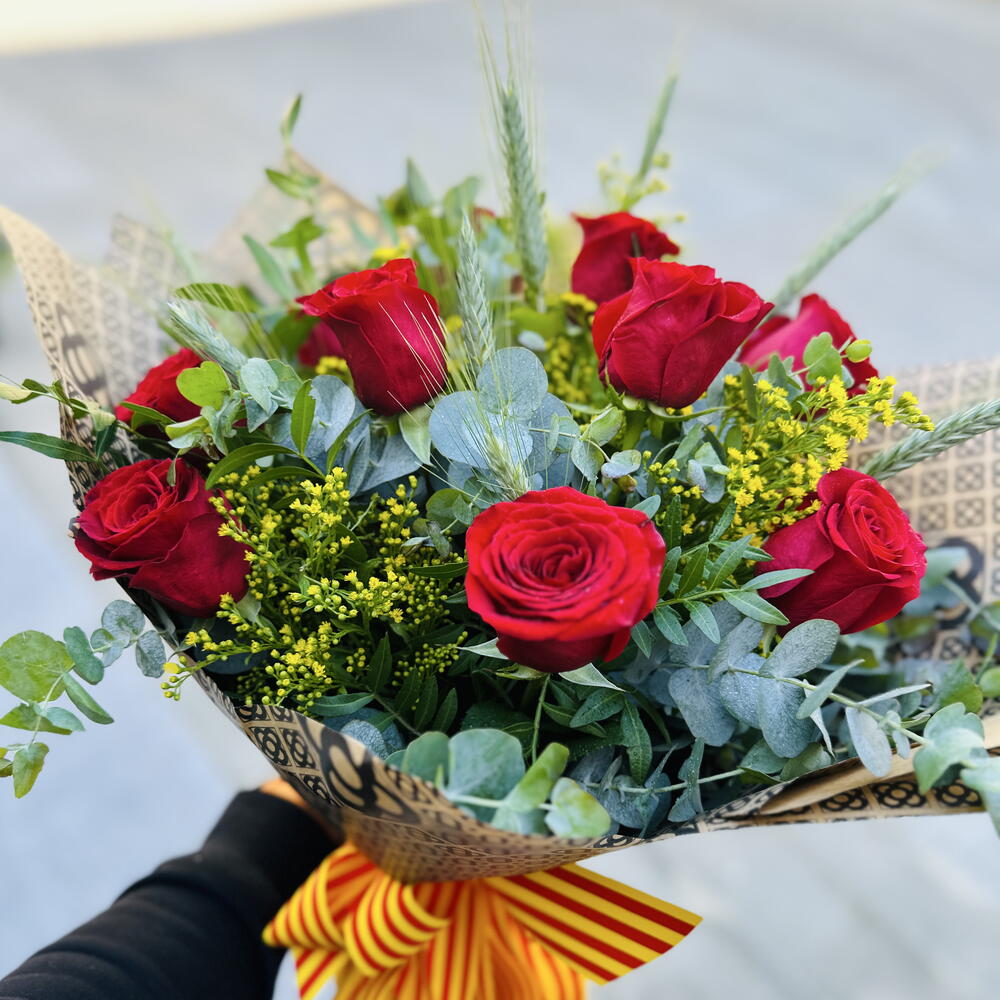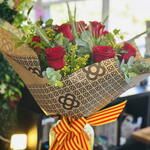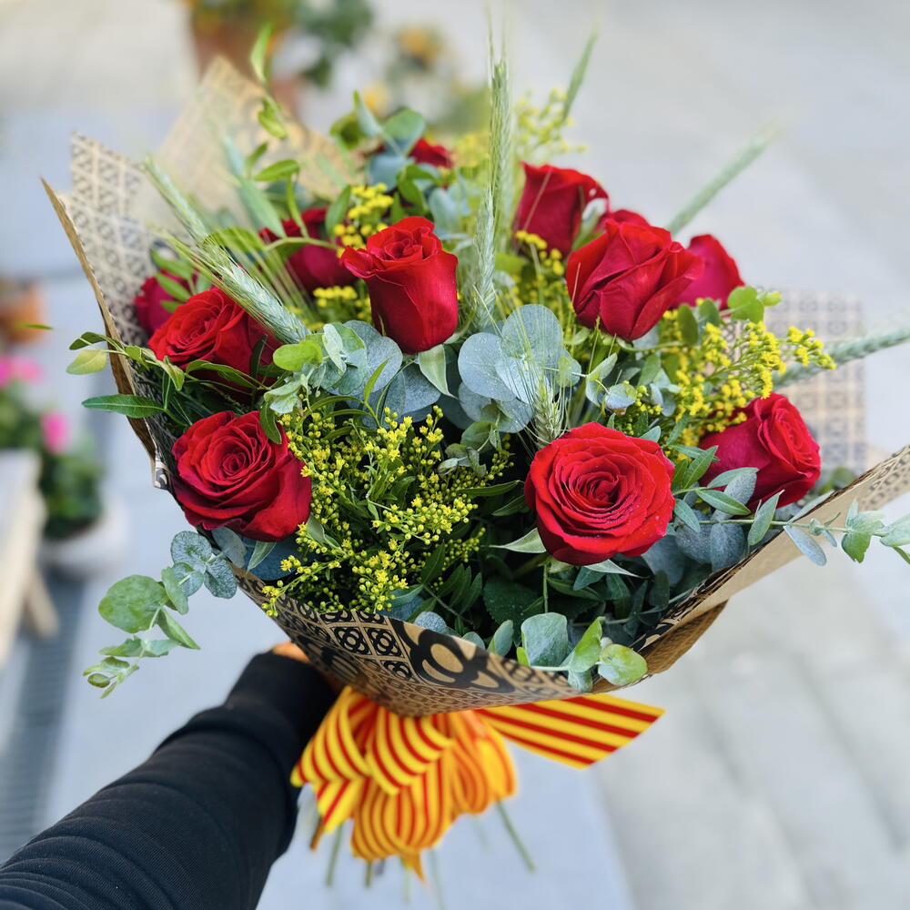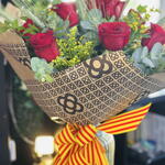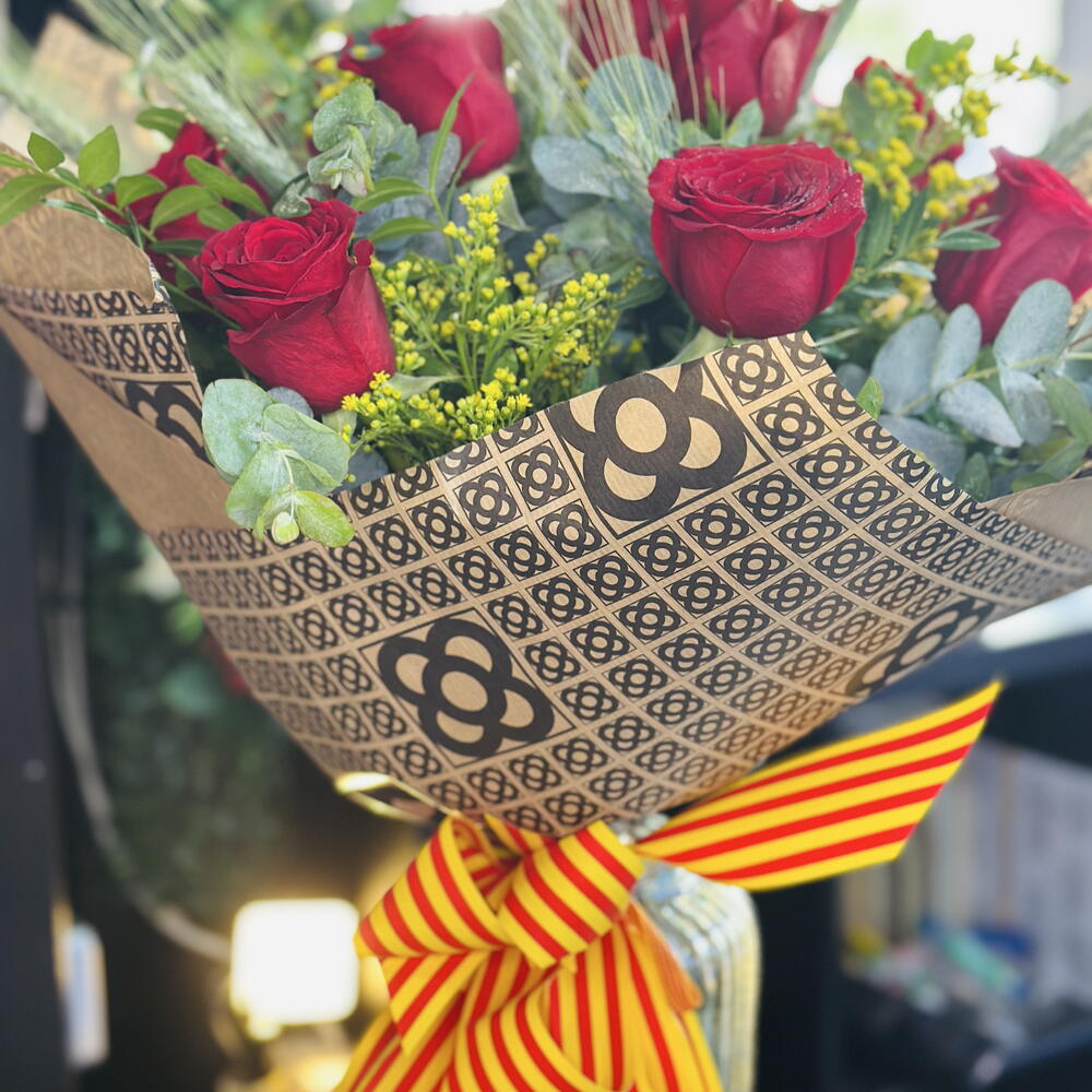 Un ramo de rosas cuidando cada detalles que combina la elegancias de las rosas tradicional y lo moderno. Una opción sencilla con gran significado, el papel kraft que simboliza los adoquines de las aceras de Barcelona.