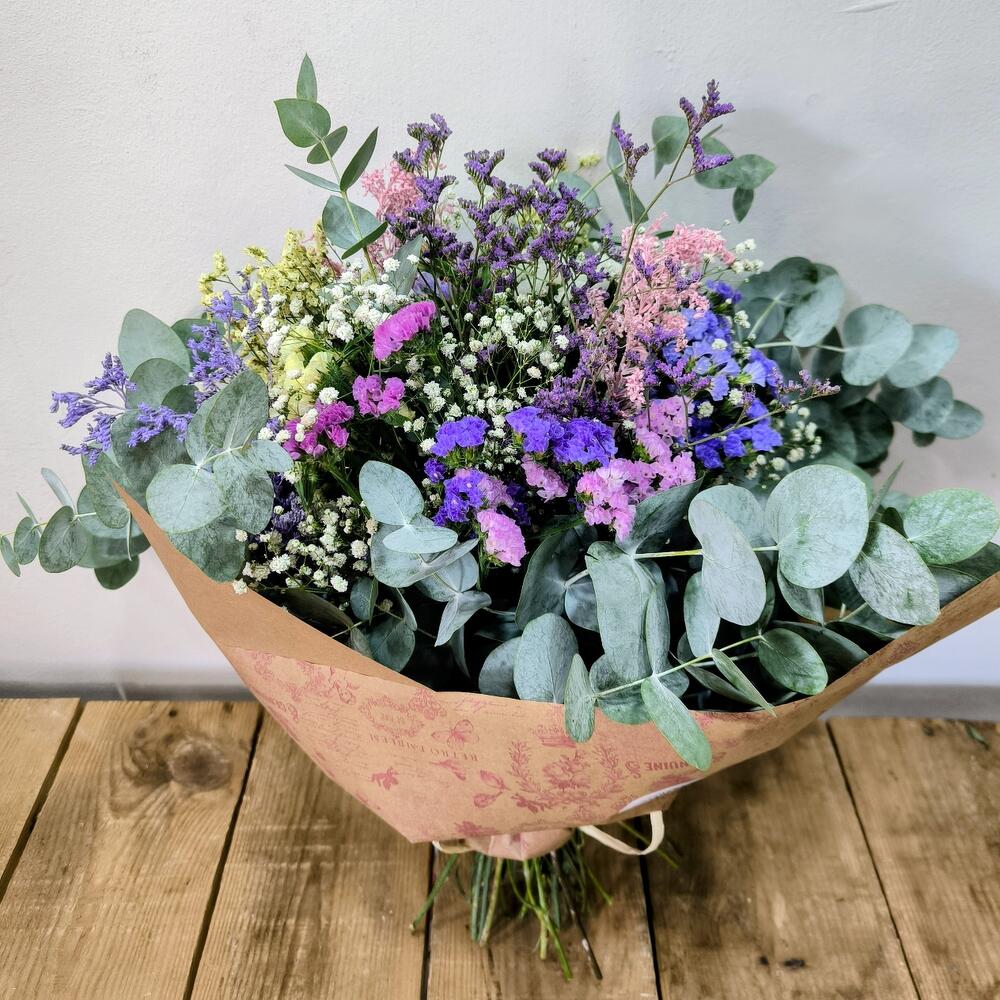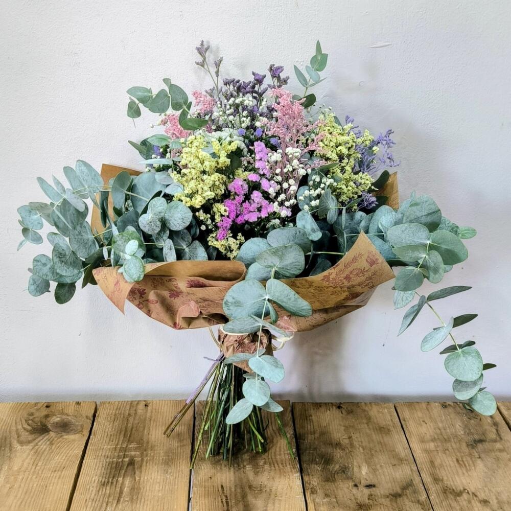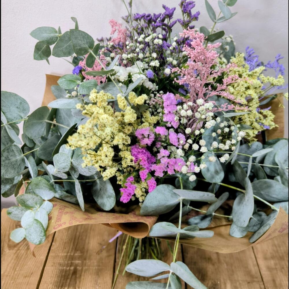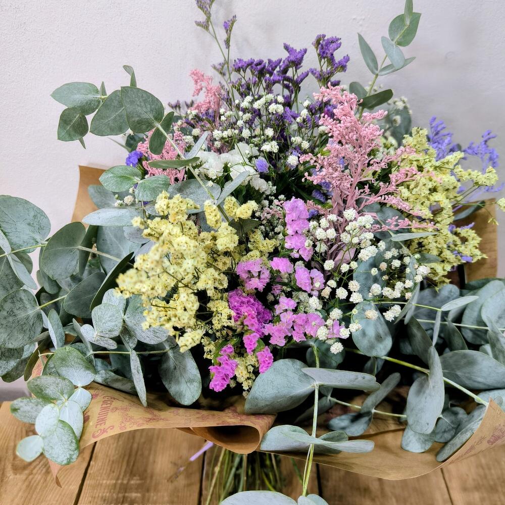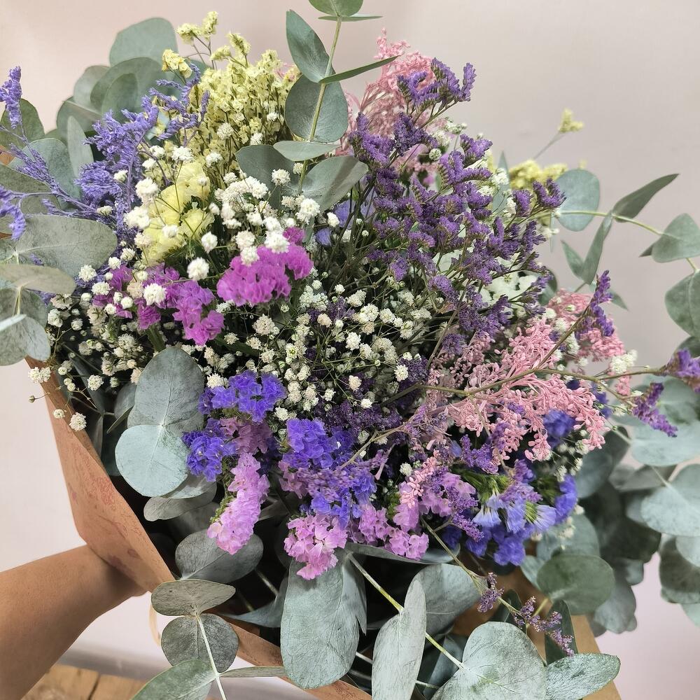eucalipto cinerea - 4 ud. paniculata blanca - 3 ud. statice multicolor - 8 ud. limonium multicolor - 5 ud.