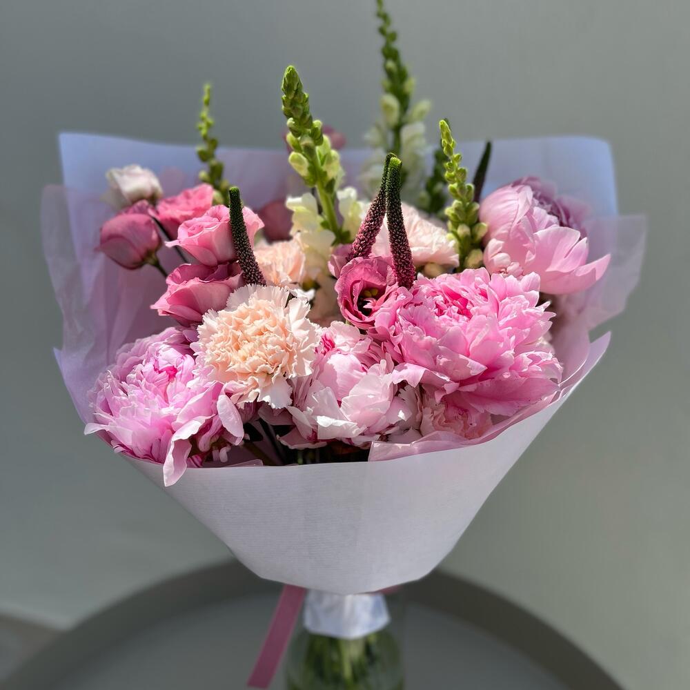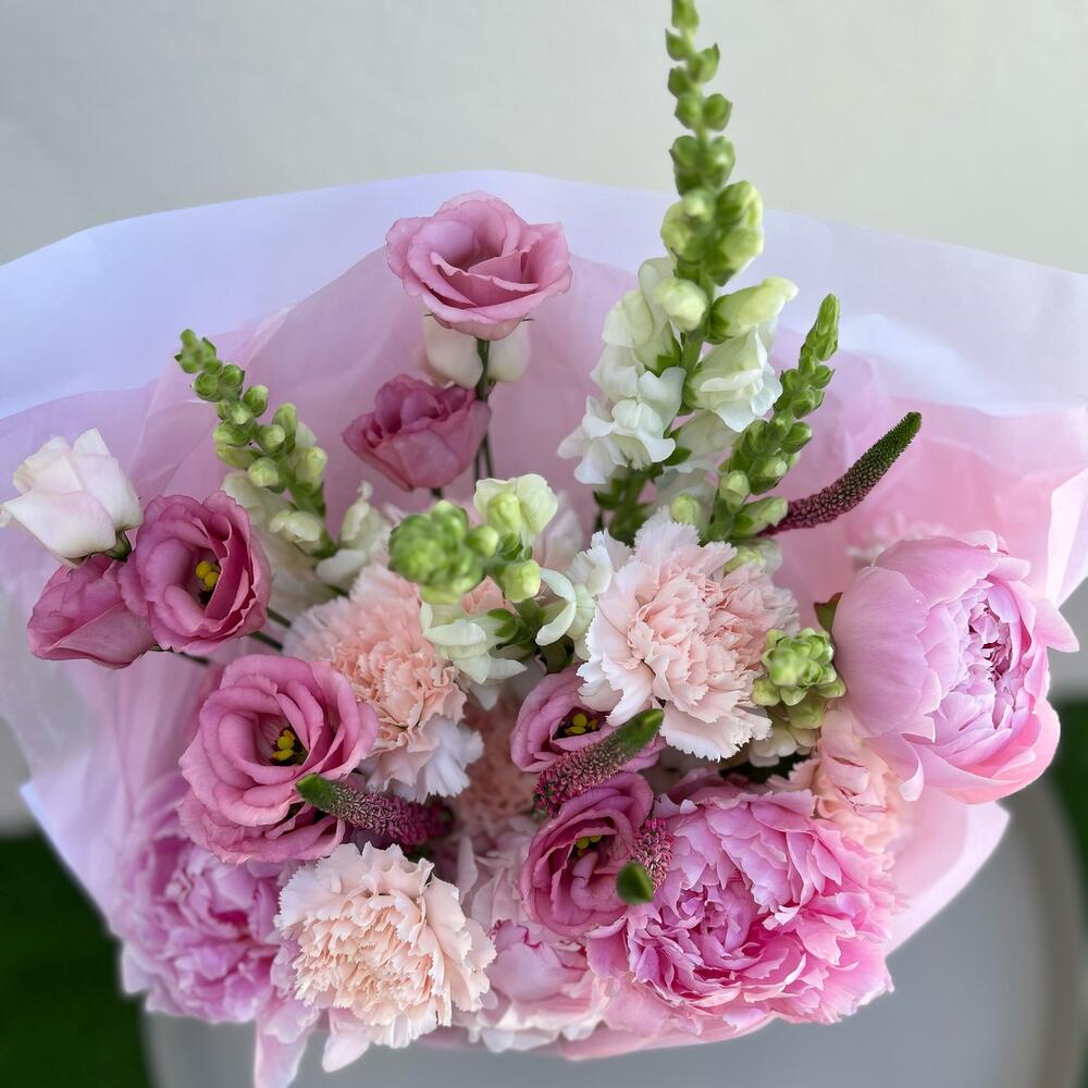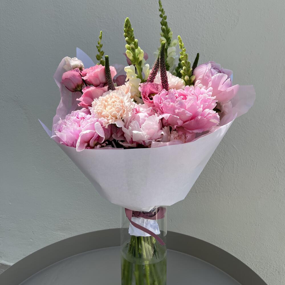 Lisianthus - 4 ud. Peony - 4 ud. antirrinum - 5 ud. clavel - 9 ud.