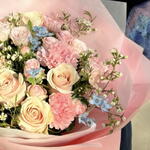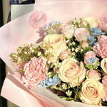 rosa - 10 ud. clavel - 5 ud. oxipetalum - 5 ud. flor de cera - 7 ud.