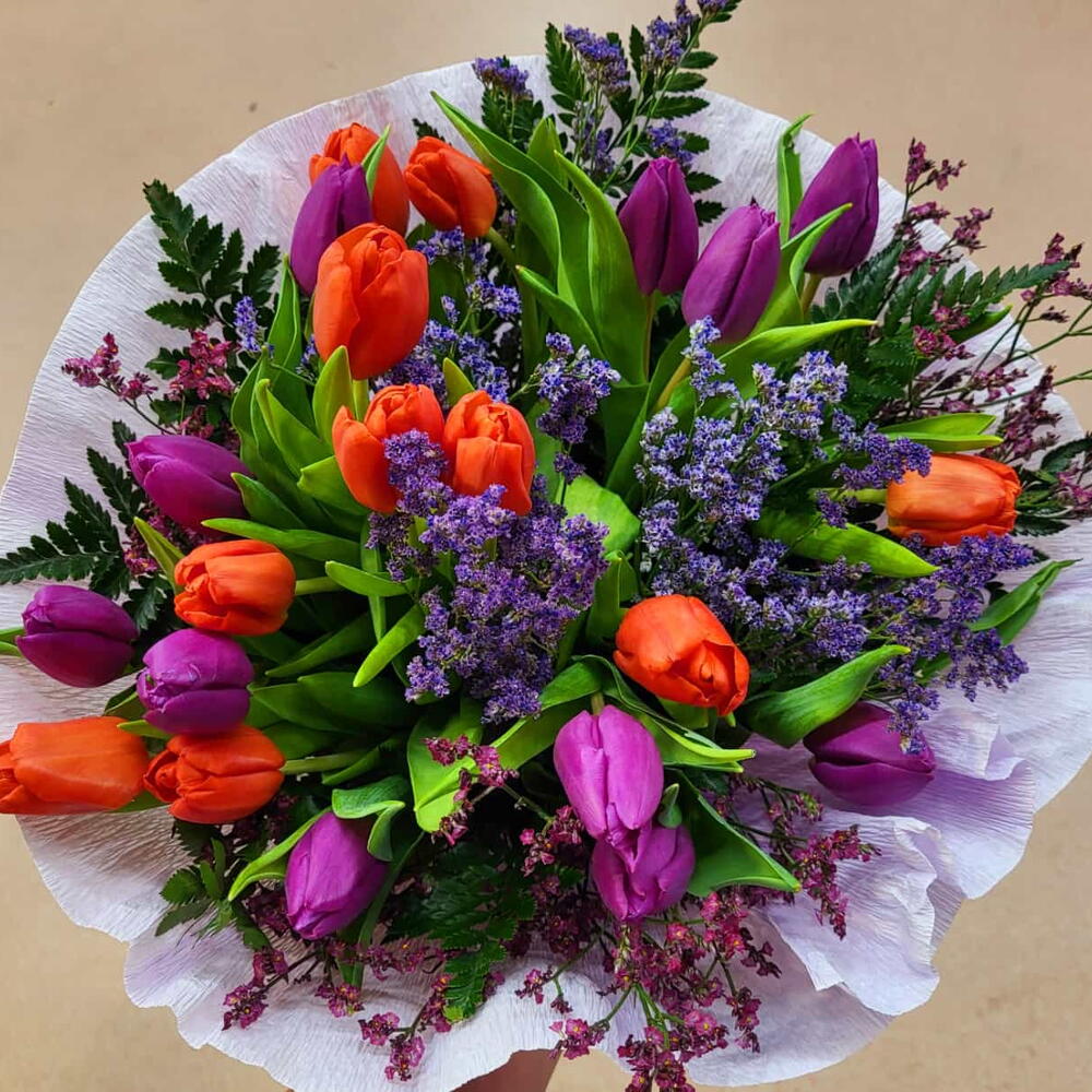 ramo tulipanes - 20 ud. 20 tulipanes y limonium 3 tallos - 20 ud.