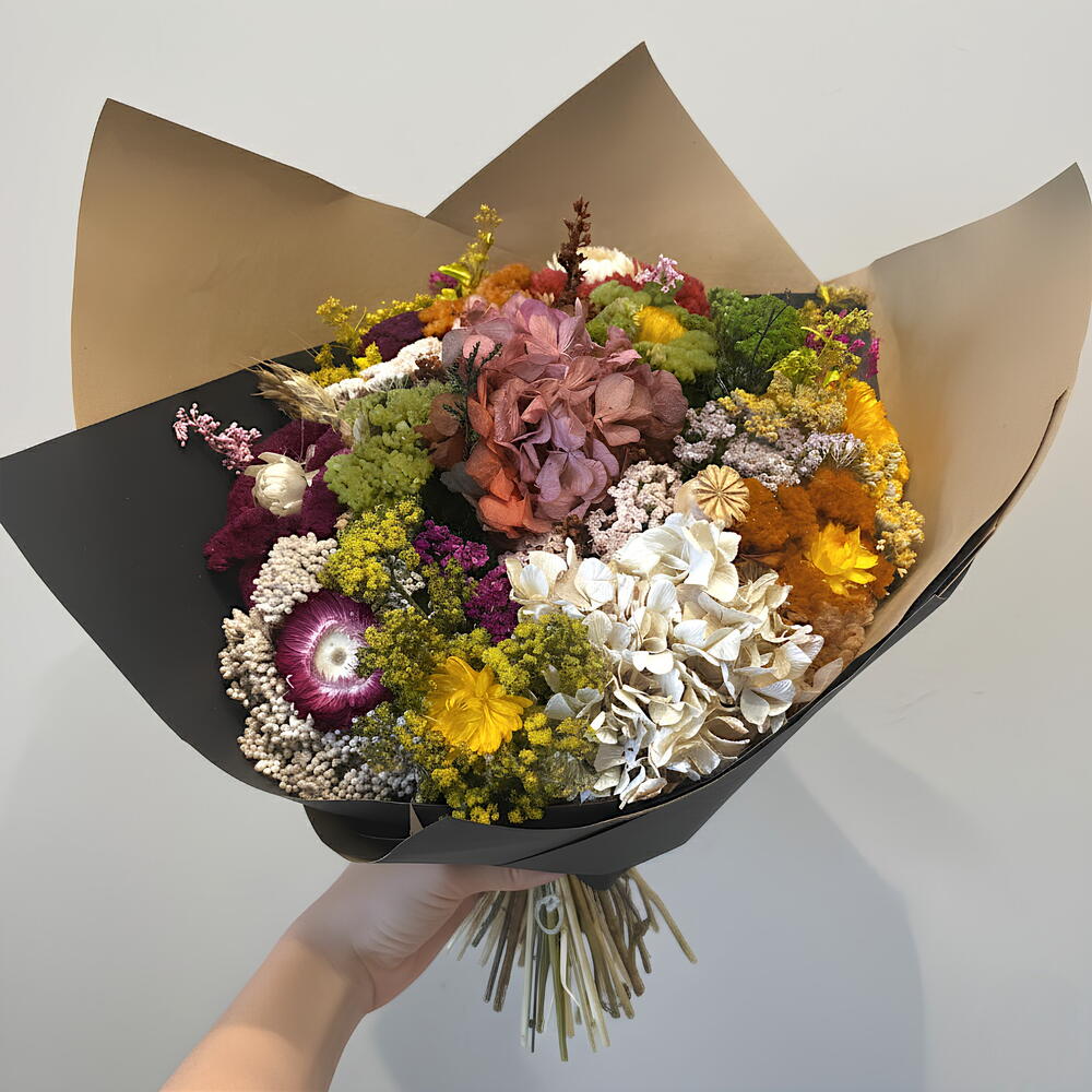 Solidago - 4 ud. hortensia - 2 ud. achillea silvestre preservado - 6 ud. siempreviva - 5 ud.