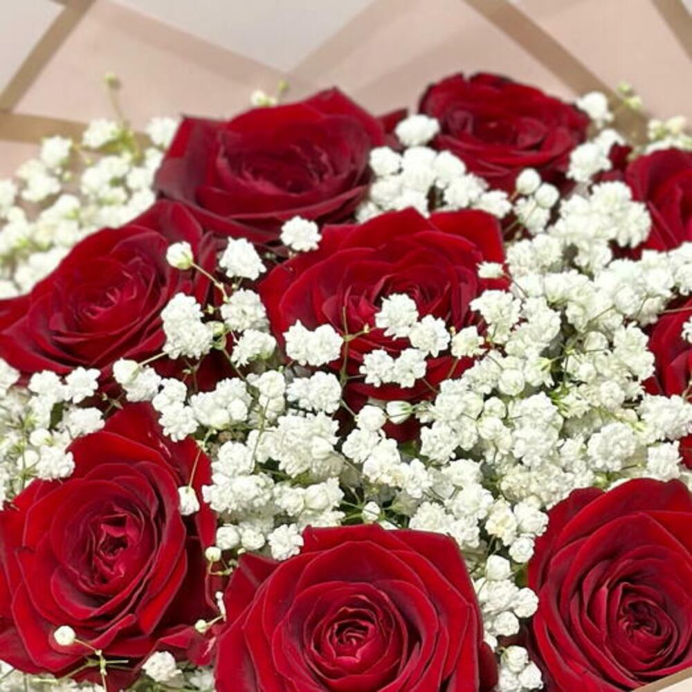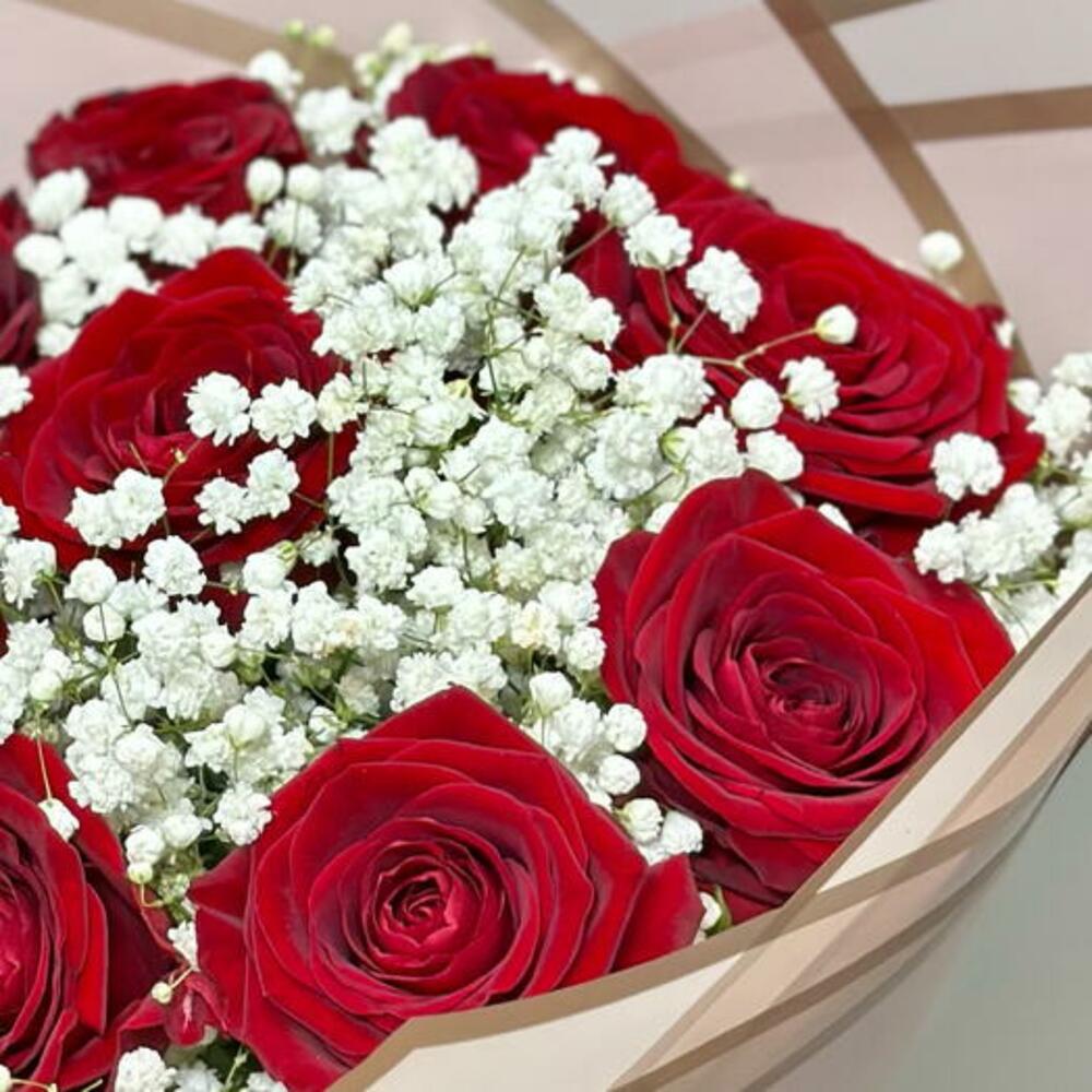 Red Roses with Gypsophila
