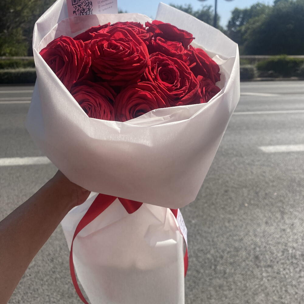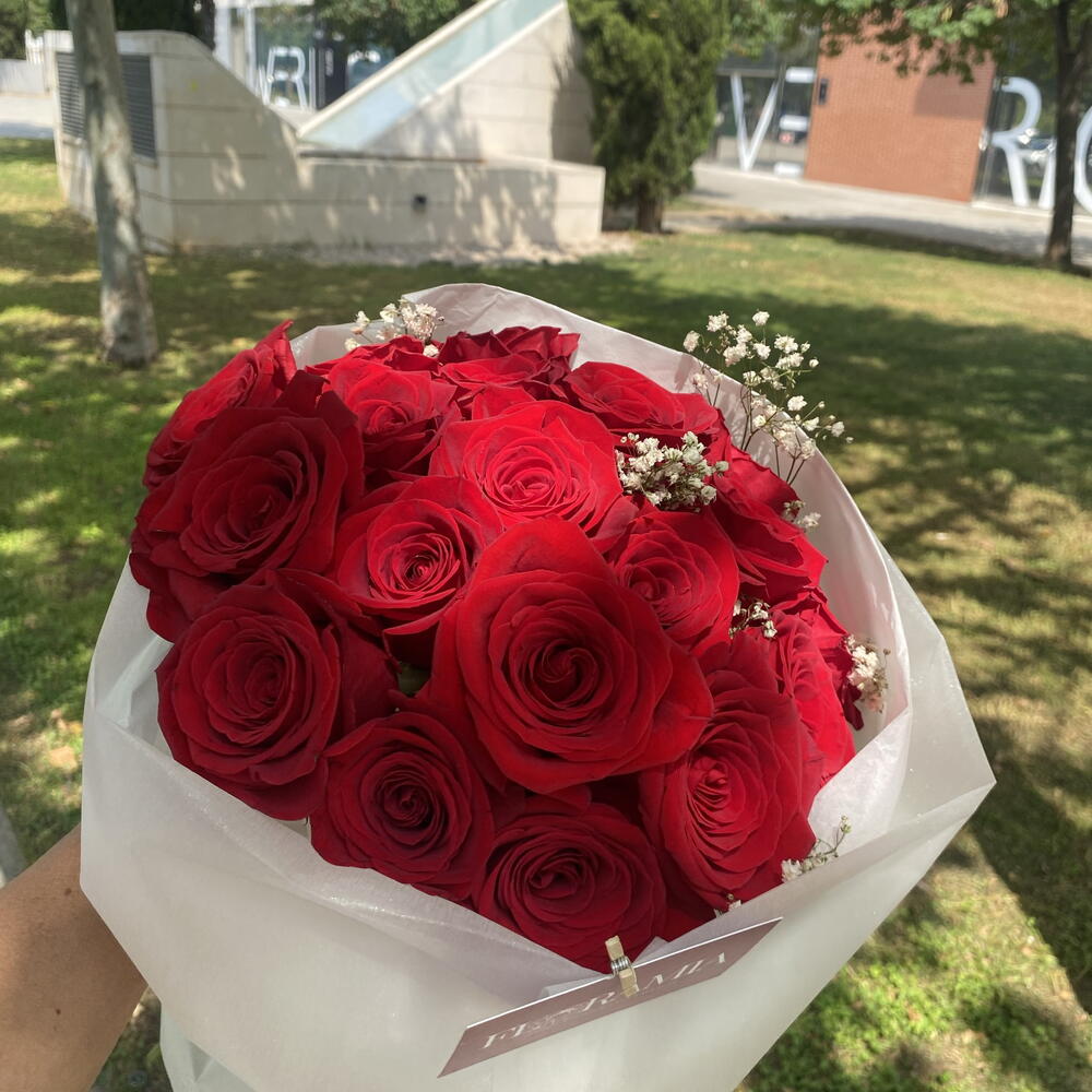 Este elegante ramo clásico es ideal para San Valentín o cualquier ocasión. Consta de 12 preciosas rosas rojas, envueltas delicadamente en 2 papeles florales blancos impermeables y 2 papeles de seda blancos, culminando su presentación con una cinta decorativa de 90 cm. Una verdadera joya que aporta distinción y encanto a cualquier celebración.