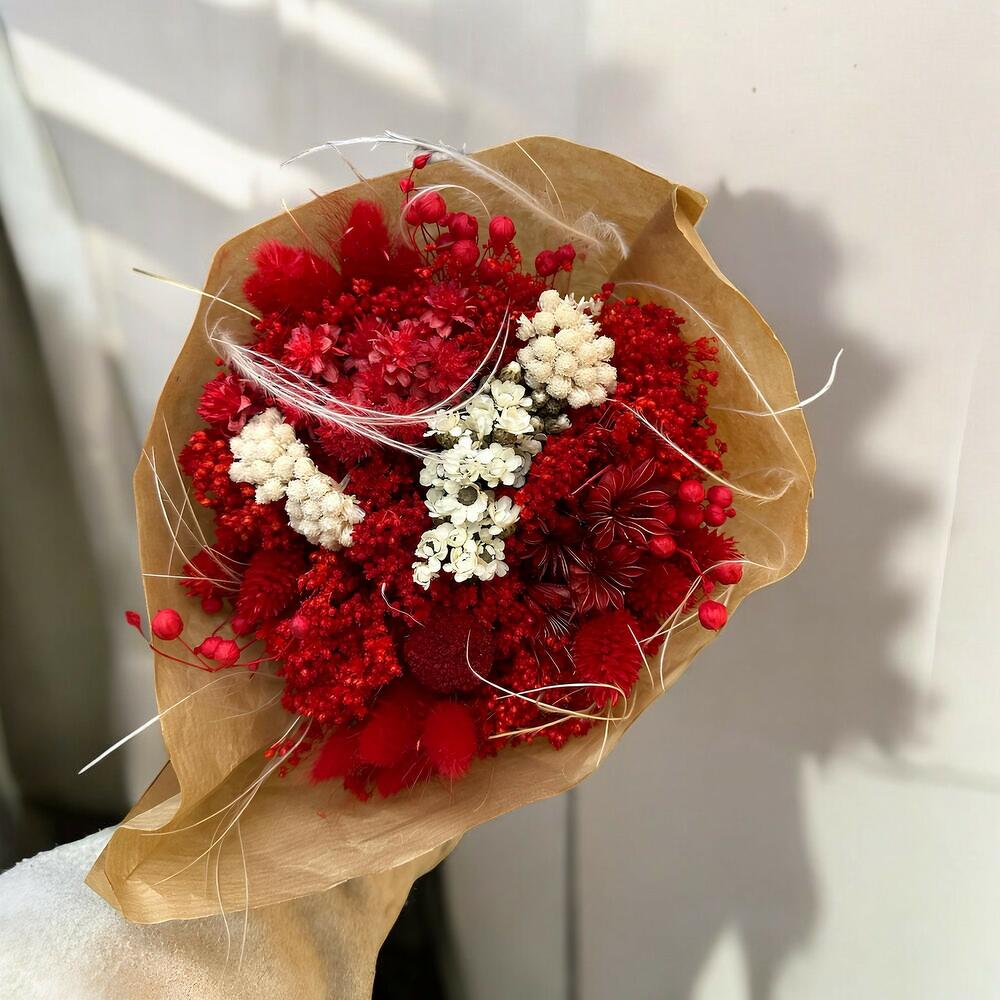 flores secas y preservadas - 5 ud. pluma - 5 ud. bloom roja - 5 ud.
