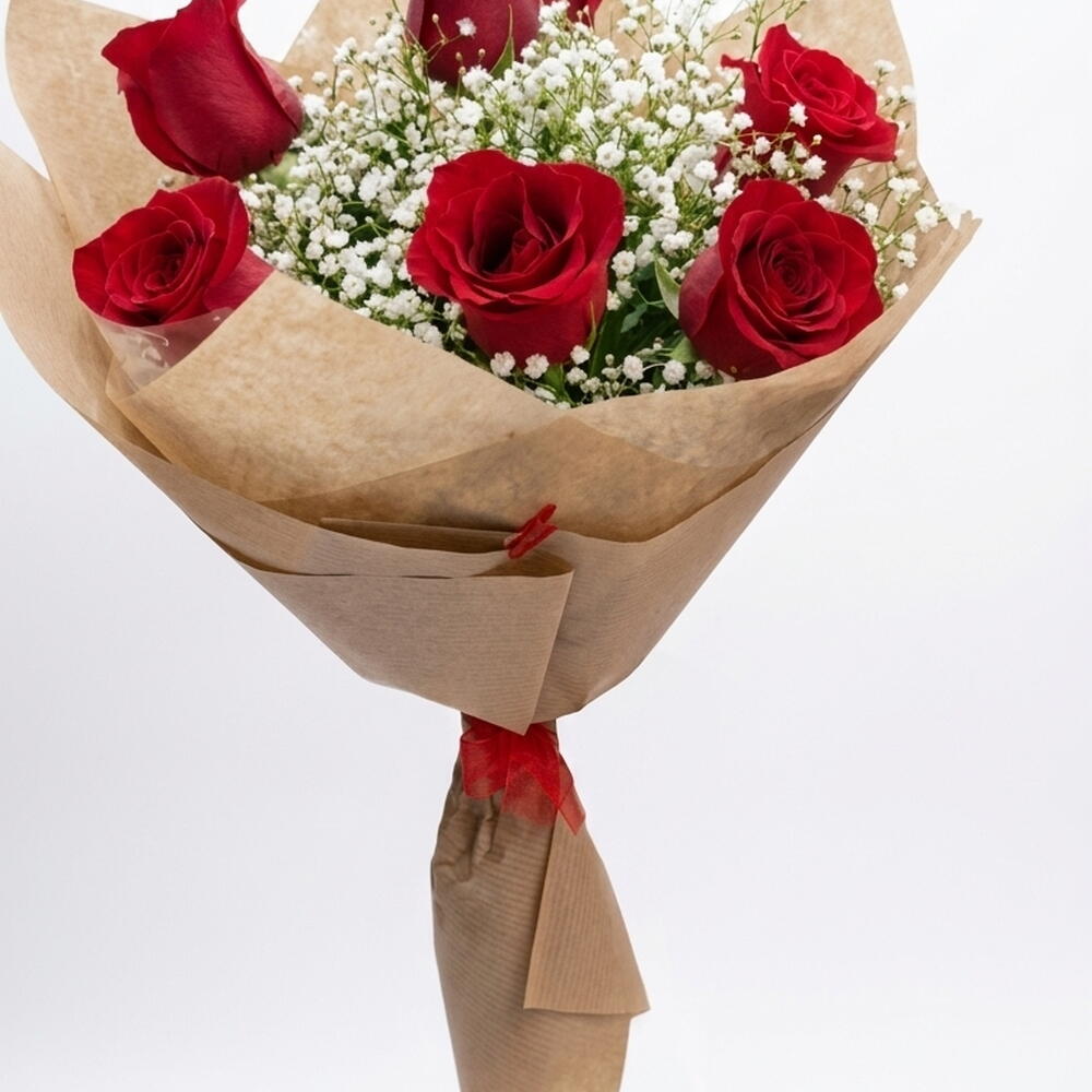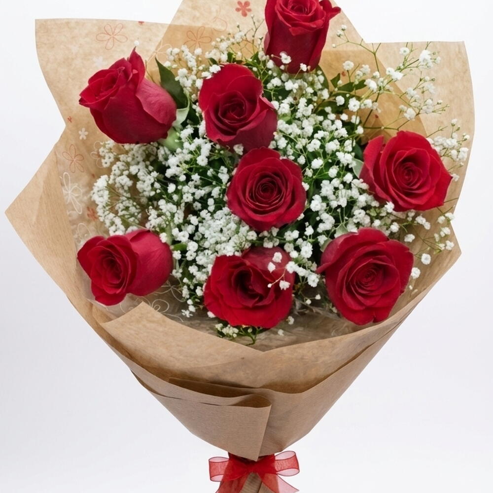 rosa roja - 7 ud. paniculata blanca - 5 ud. envoltorio decorativo - 3 ud.