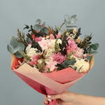 Este encantador ramo de flores secas y preservadas combina tonos suaves de rosa y crema con elegantes matices verdes, creando una composición romántica y armoniosa. Las hortensias preservadas se mezclan con delicadas flores texturizadas y hojas de eucalipto, aportando volumen y un aire natural que transmite calma y sofisticación. Su diseño ligero y contemporáneo lo convierte en un detalle perfecto para sorprender con un regalo duradero que conserva su belleza con el paso del tiempo. Es ideal para cumpleaños, aniversarios, nacimientos, celebraciones románticas o como pieza decorativa que aporta calidez al hogar u oficina. Al tratarse de un ramo de flores secas y preservadas, no requiere agua y mantiene su forma y color durante meses. Para conservarlo en óptimas condiciones, se recomienda colocarlo en un lugar seco, evitar la luz solar directa, mantenerlo alejado de la humedad y limpiarlo suavemente con aire frío para retirar el polvo.