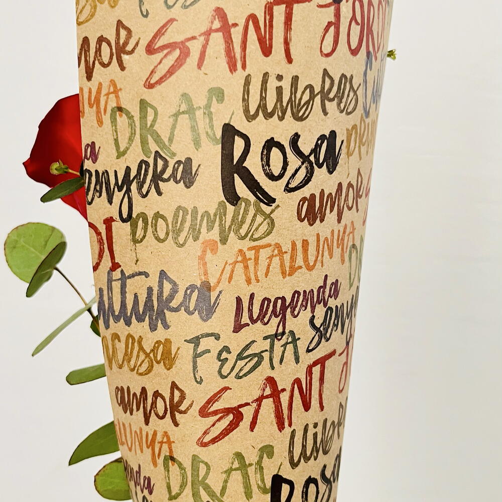 Composición rosa de Sant Jordi en bonito envoltorio de kraft water resistant