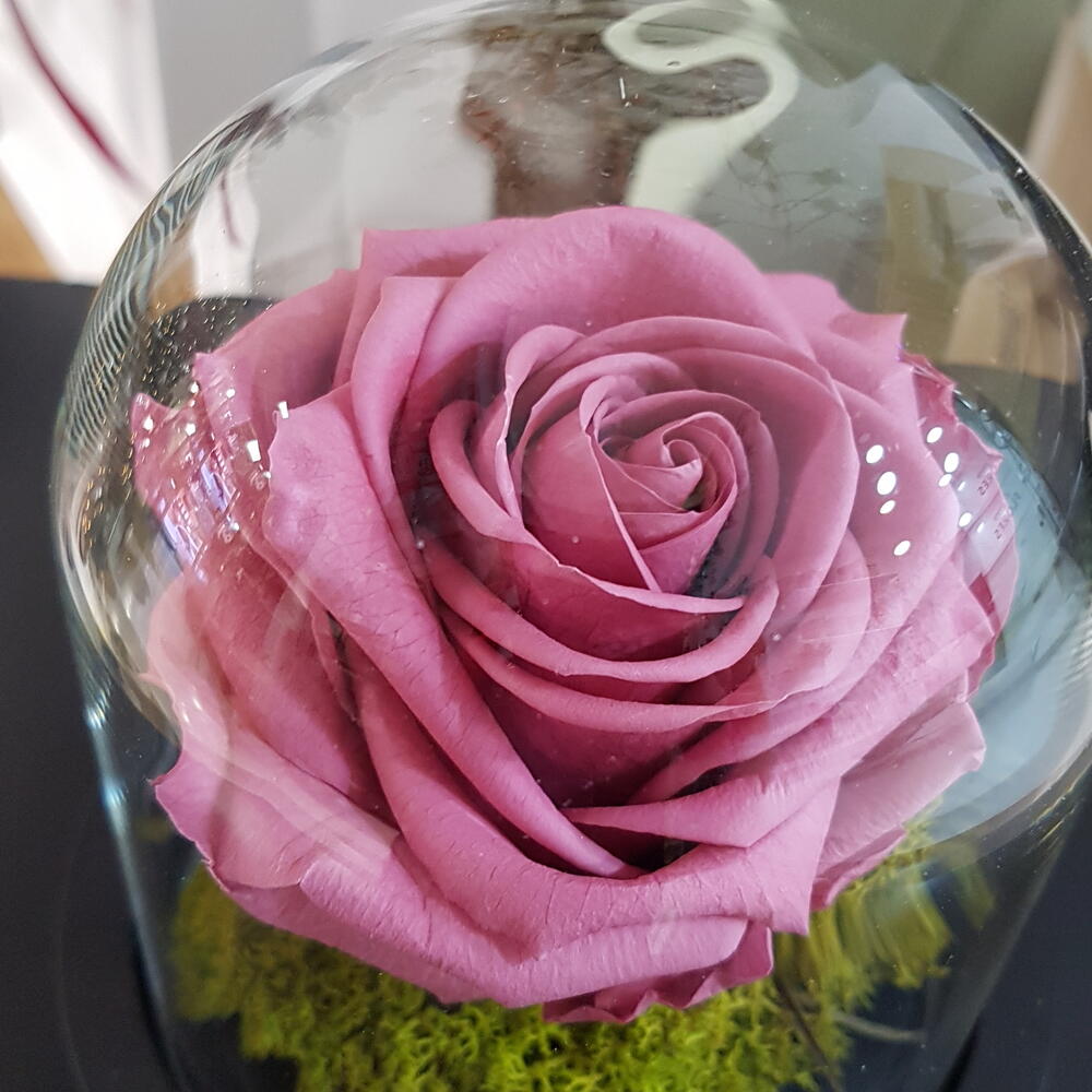 musgo preservado - 1 ud. cúpula - 1 ud. rosa preservada xl - 1 ud. bolsa papel - 1 ud. lazo satén - 1 ud.