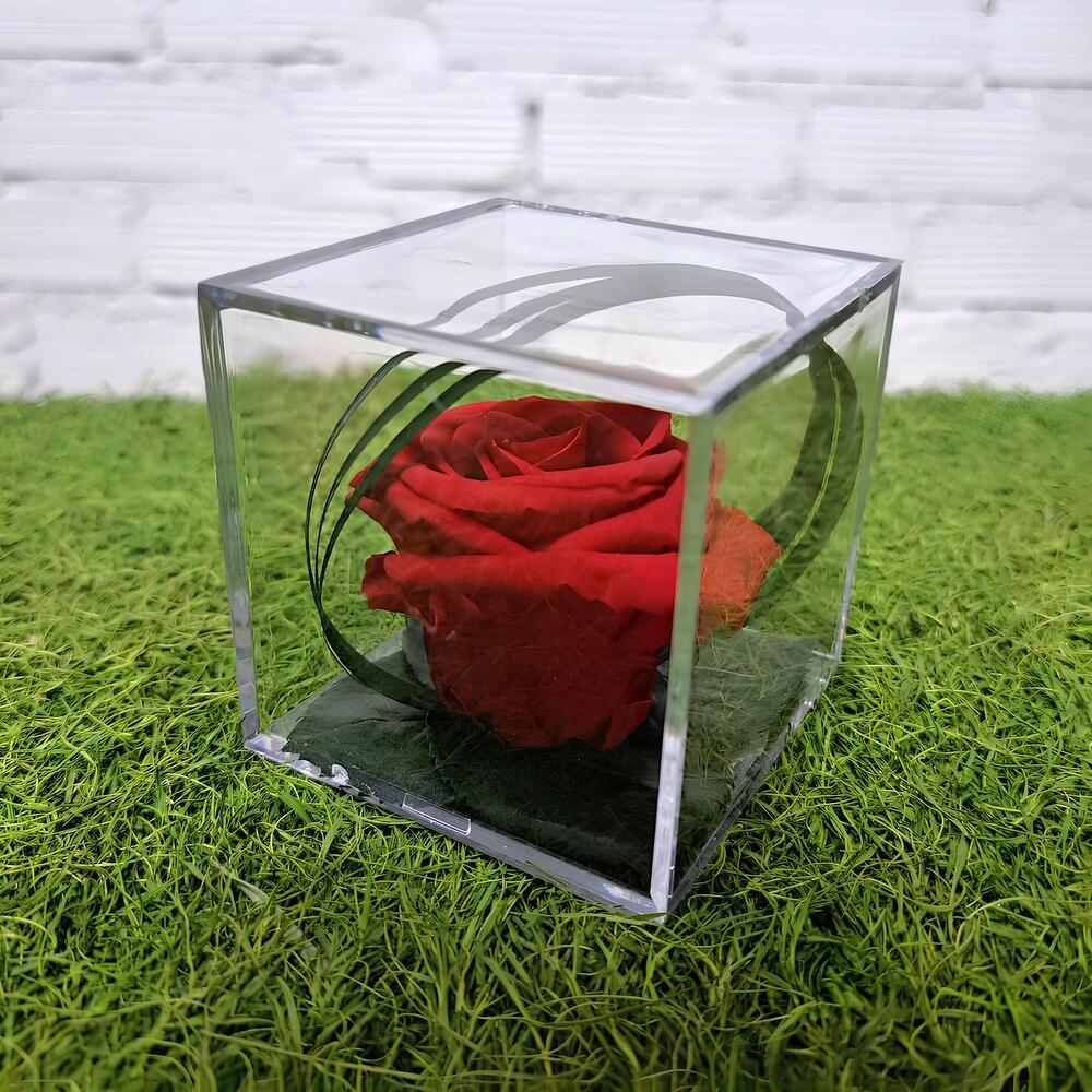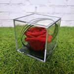 Precioso detalle de rosa preservada conservada en una cajita de metraquilato.