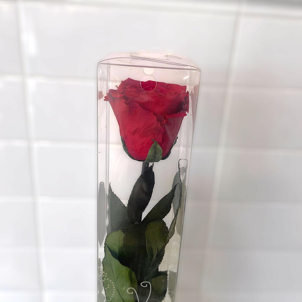 Rosa preservada roja tallo largo