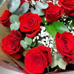rosas rojas - 12 ud. verdes variados - 5 ud. paniculata blanca - 3 ud. envoltorio decorativo - 2 ud.