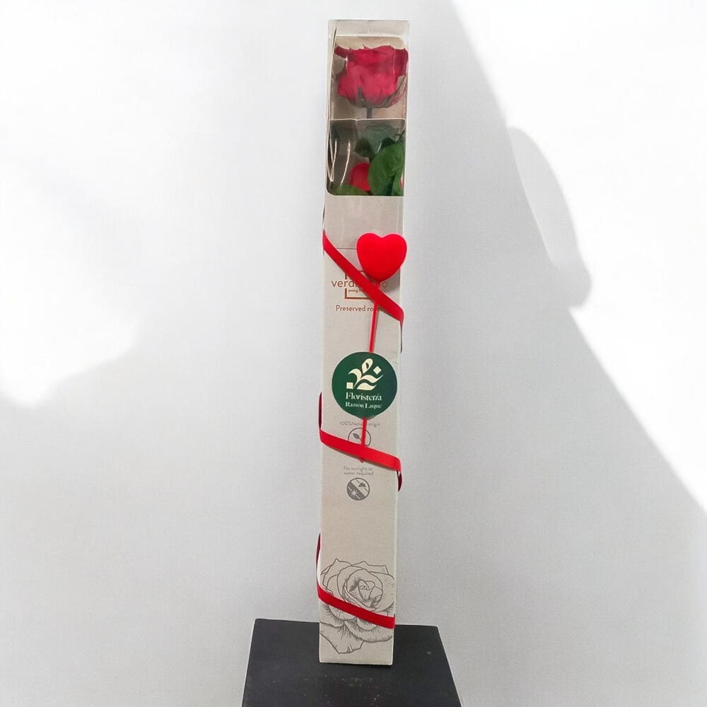 Esta rosa preservada es un detalle elegante y duradero, perfecto para expresar cariño de una manera especial. Su color rojo intenso se mantiene vibrante gracias al proceso de preservación natural, que permite disfrutarla por más de un año. Presentada en un estuche estilizado, se convierte en un regalo sofisticado y listo para entregar. No necesita agua ni luz directa, por lo que siempre lucirá impecable sin esfuerzo. Es ideal para decorar escritorios, mesas o rincones especiales del hogar. Para conservar su belleza, evita la humedad y el contacto directo con el sol. Simplemente mantenla en un ambiente seco y limpio, ¡y seguirá acompañando tus momentos más significativos!