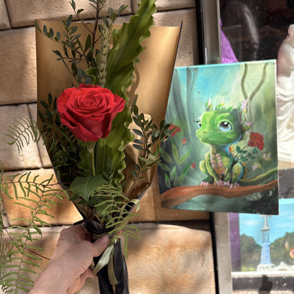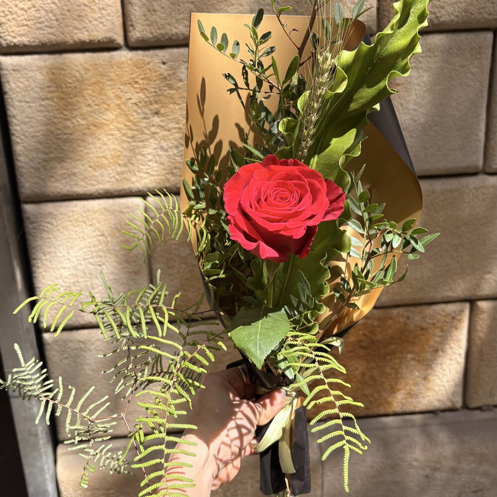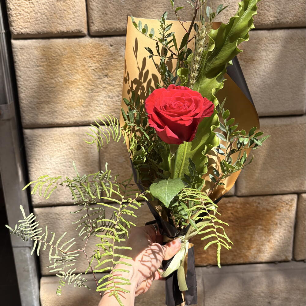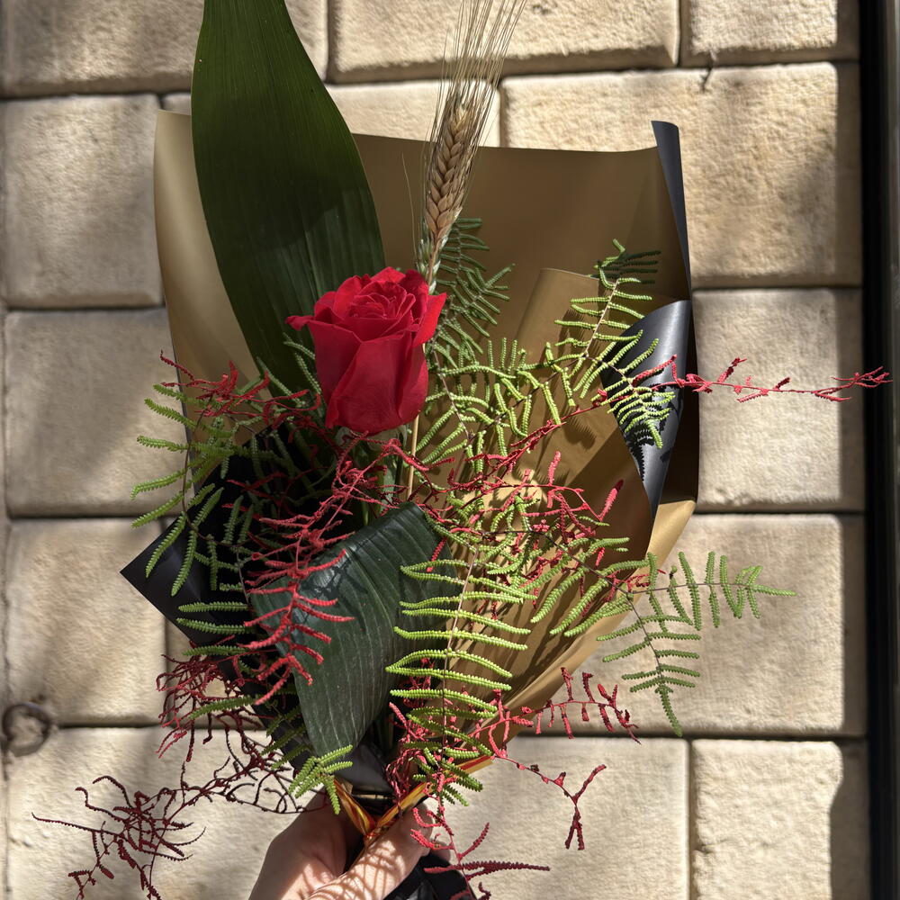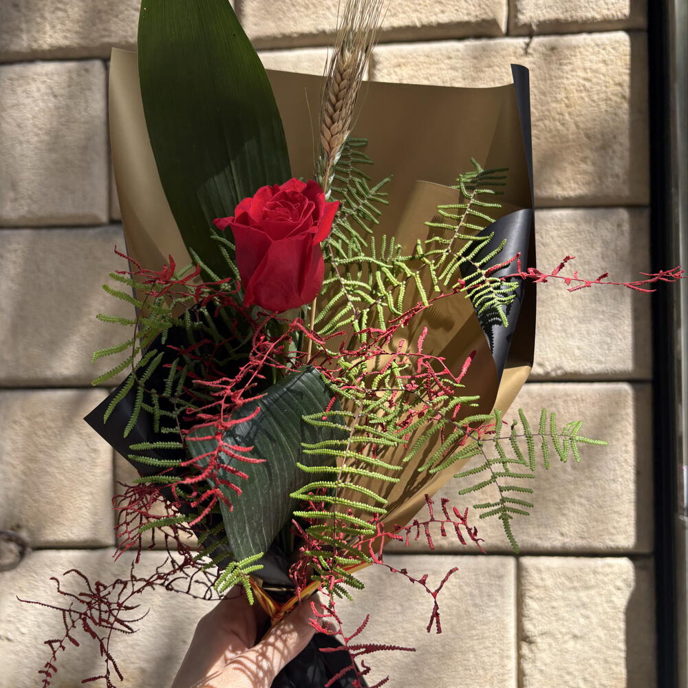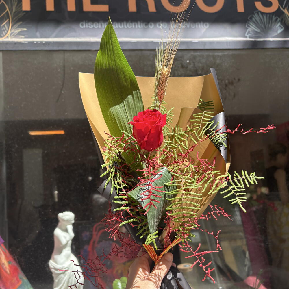 rosa roja - 1 ud. verdes variados - 6 ud. espiga - 2 ud.