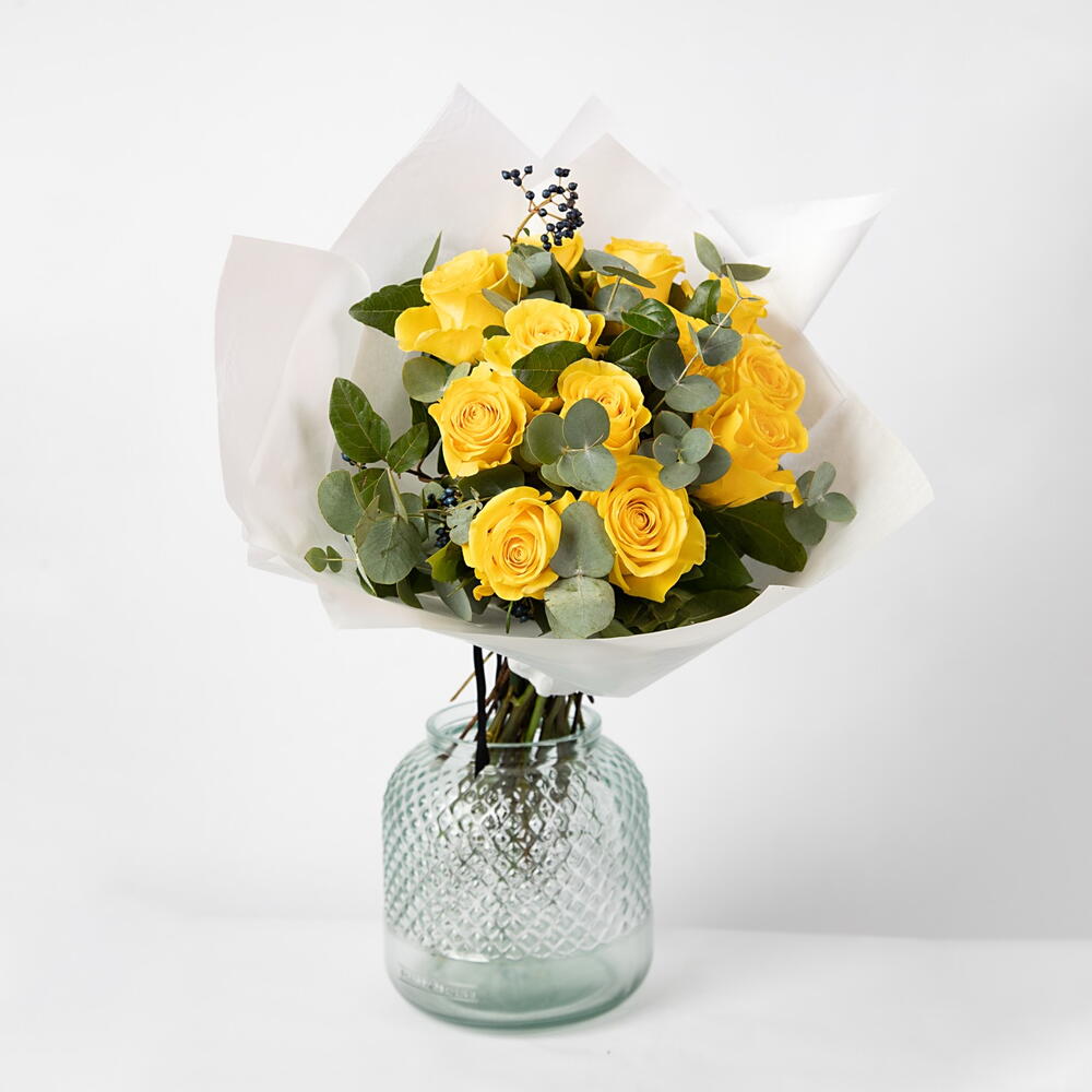 rosas amarillas - 12 ud. eucalipto cinerea - 4 ud.