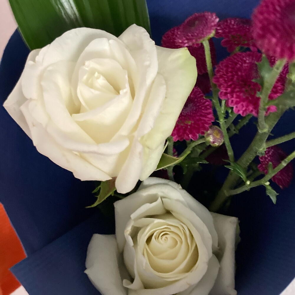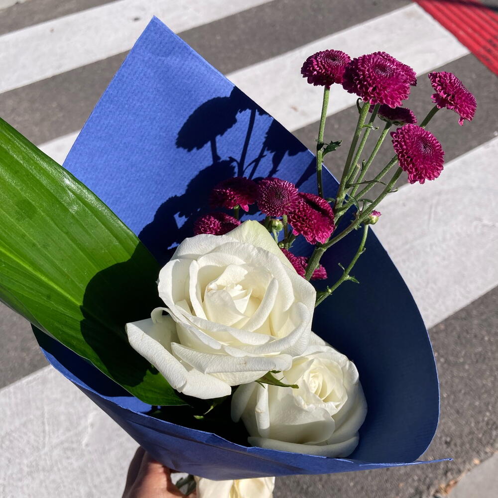rosas blancas - 2 ud. follaje o complemento - 1 ud. flor complemento - 2 ud.