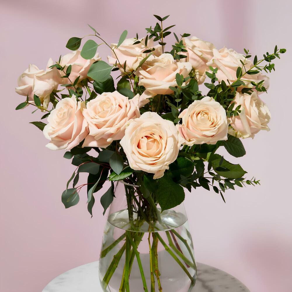 eucalipto - 8 ud. rosas pastel - 12 ud.