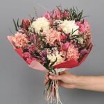 Este delicado ramo de flores secas y preservadas en tonos pastel transmite ternura y elegancia en cada detalle. La combinación de hortensias en tonos crema y rosa, junto con pequeñas flores texturizadas y follajes ligeros, crea una композиция suave y romántica que aporta calidez a cualquier espacio. Su estética natural y etérea lo convierte en un regalo perfecto para expresar cariño y gratitud. Ideal para cumpleaños, nacimientos, aniversarios o como decoración duradera para el hogar. Gracias a su elaboración con flores preservadas, mantiene su belleza durante mucho tiempo sin necesidad de agua. Para conservarlo en perfecto estado, se recomienda mantenerlo en un lugar seco, alejado de la luz solar directa y de la humedad, evitar aplastarlo y limpiarlo suavemente con aire frío para retirar el polvo.