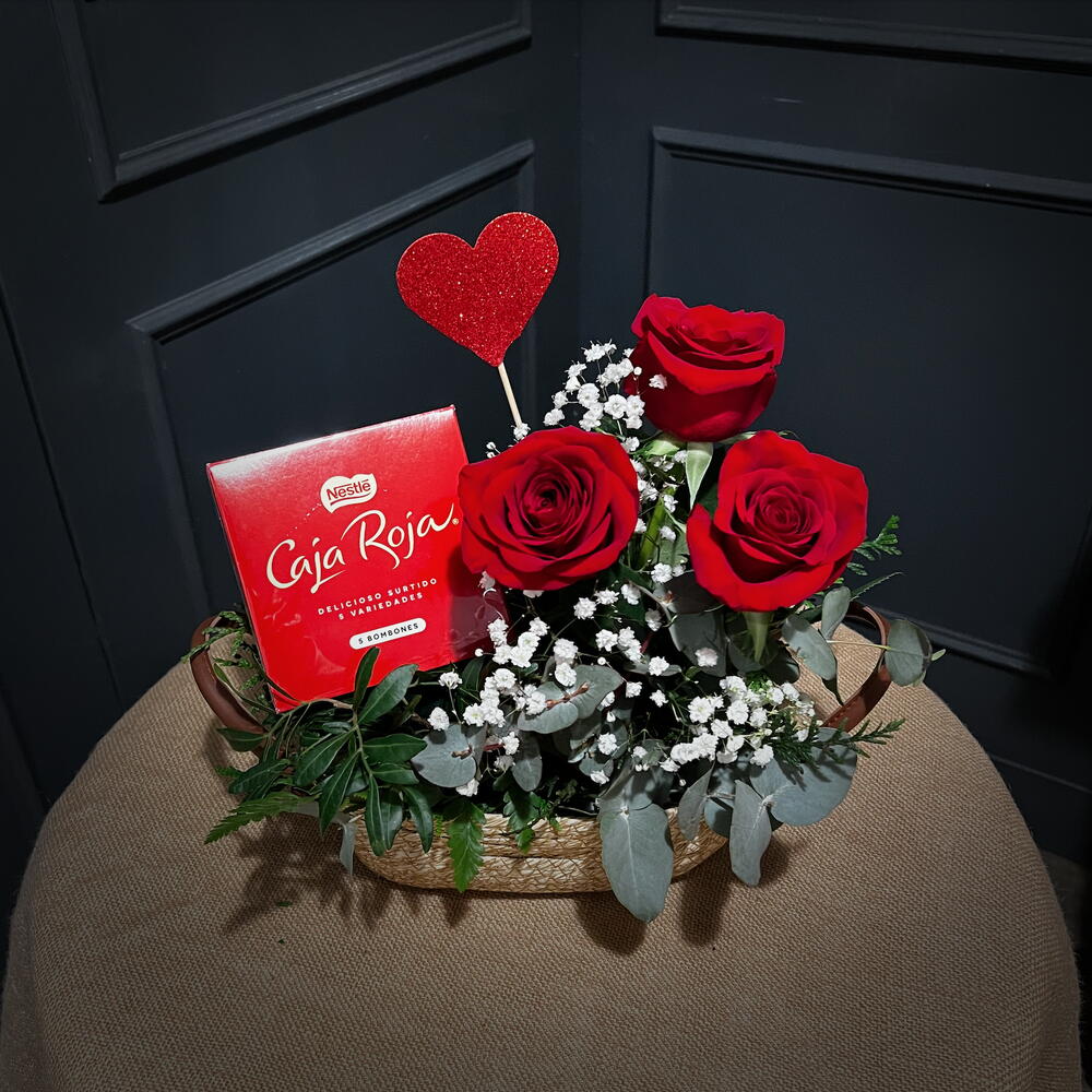 Sorprende a tu ser querido con nuestro Set especial «Velada romantica»para el Día de los Enamorados de Nerine Arte Floral, tu Floristería en Granada. Este encantador set en una preciosa cesta de yute incluye un arreglo floral de tres rosas frescas y una caja de degustación de bombones Nestlé. Perfecto para crear momentos inolvidables, nuestro set garantiza calidad y frescura.