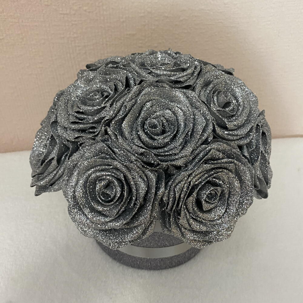 caja decorativa - 1 ud. rosa eterna plateada - 16 ud.