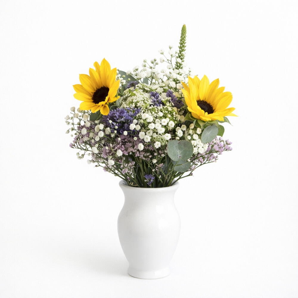 bonito ramo silvestre con paniculata verdes variados y girasoles