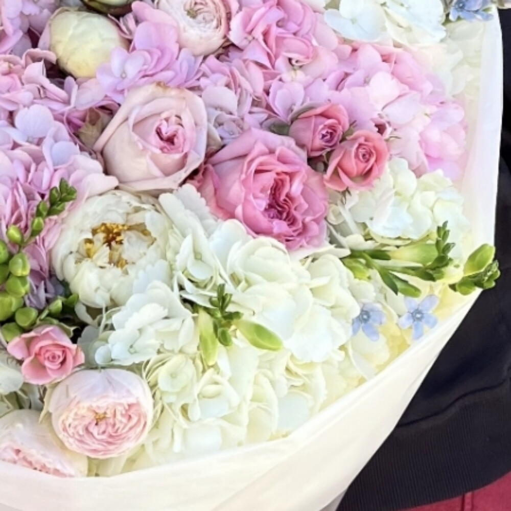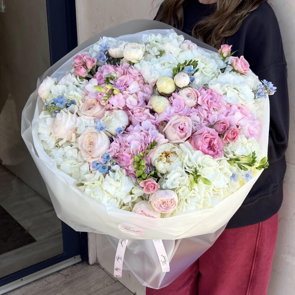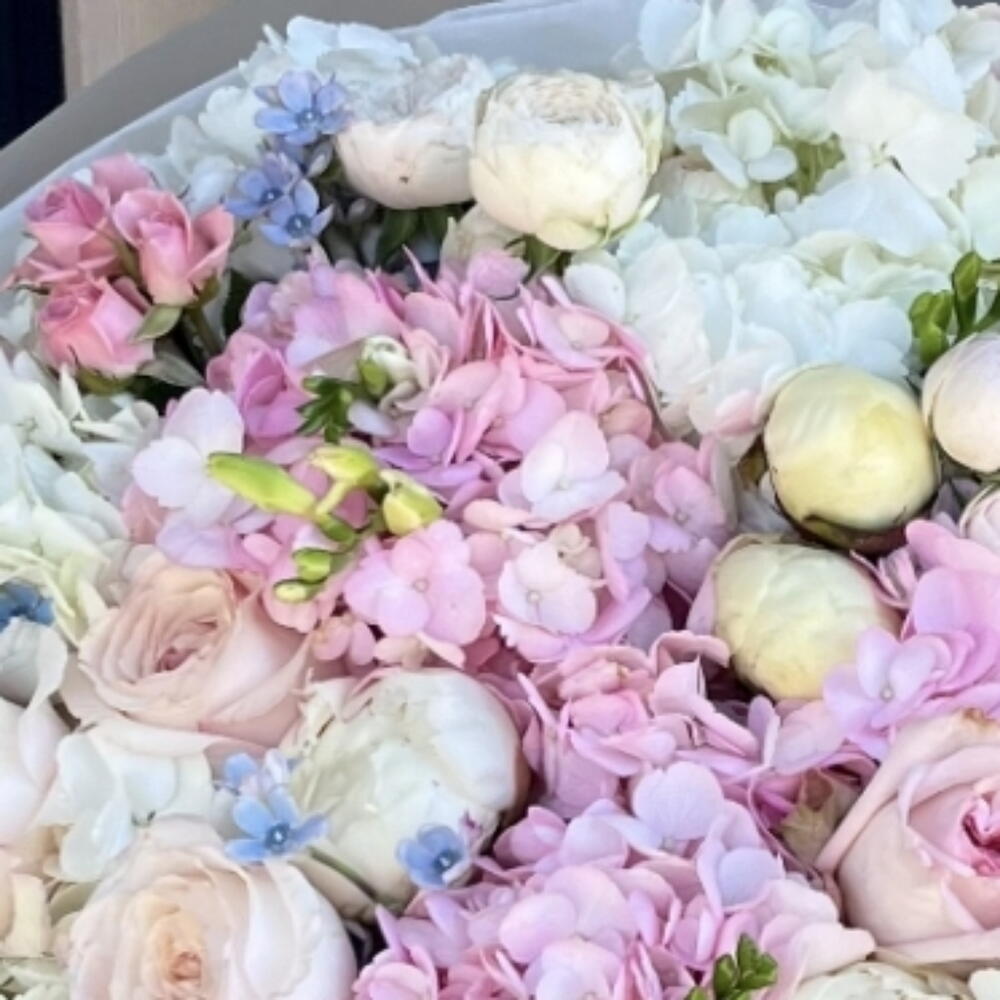 hortensia - 15 ud. Peony - 10 ud. rosas - 7 ud. rosa spray - 8 ud. oxipetalum - 8 ud. nerine - 7 ud.