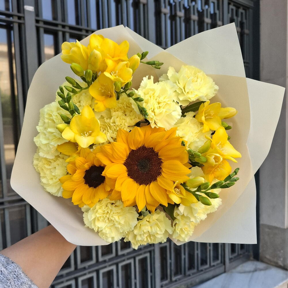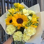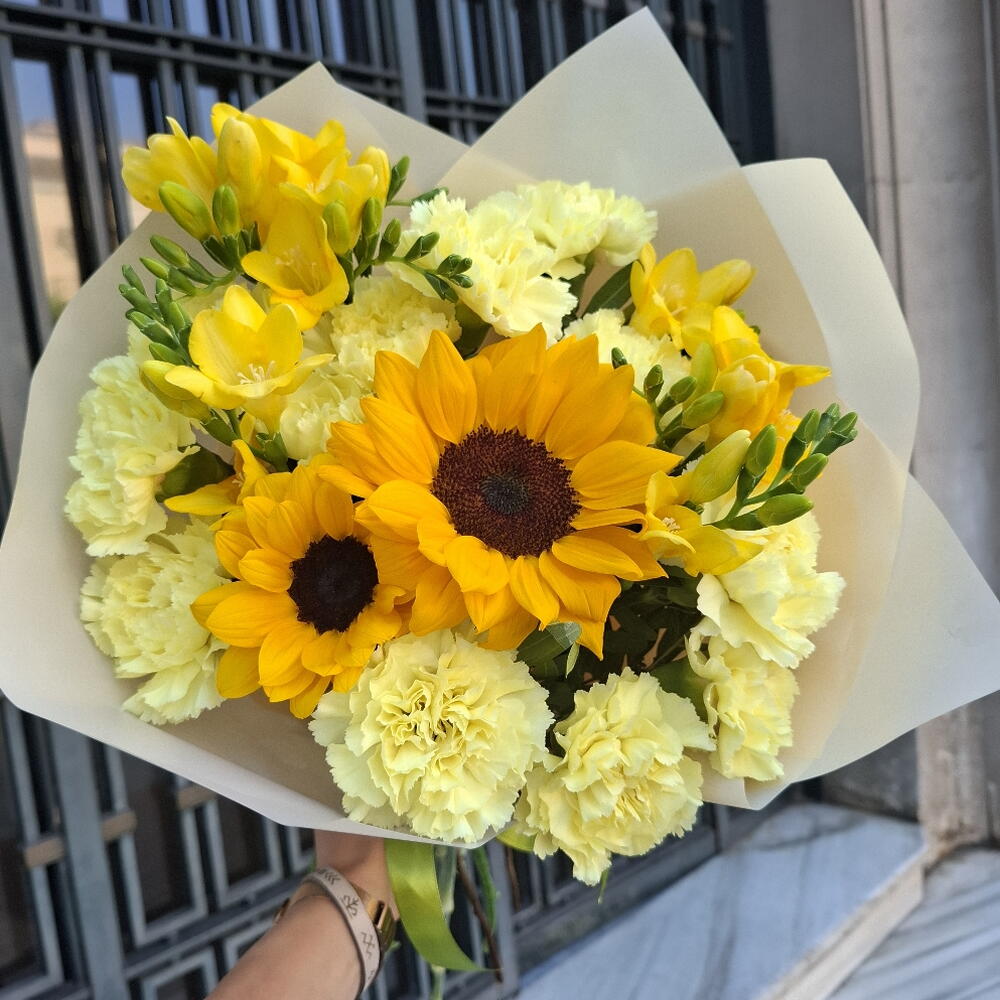 carnation - 12 ud. fresia - 5 ud. girasoles - 2 ud.