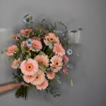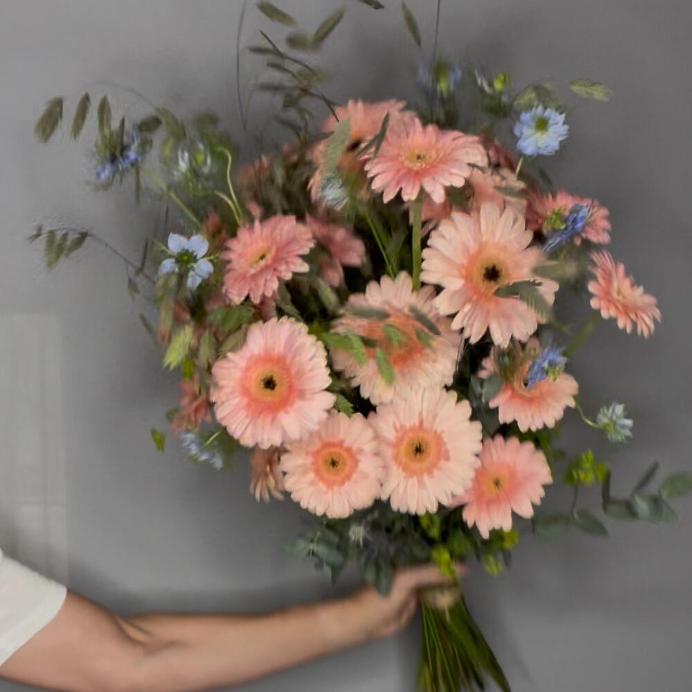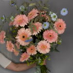Este exquisito ramo de flores de autor combina perfectamente la belleza etérea de 21 gerberas, añadiendo el toque intrigante de 10 ud. de nigella. Acentuado con la frescura de 10 ud. de eucalipto cinerea y finalmente envuelto con la sofisticación rústica de 20 ud. de chasmantium. Un ramo que simboliza la elegancia y la serenidad, perfecto para cualquier ocasión.