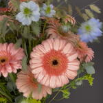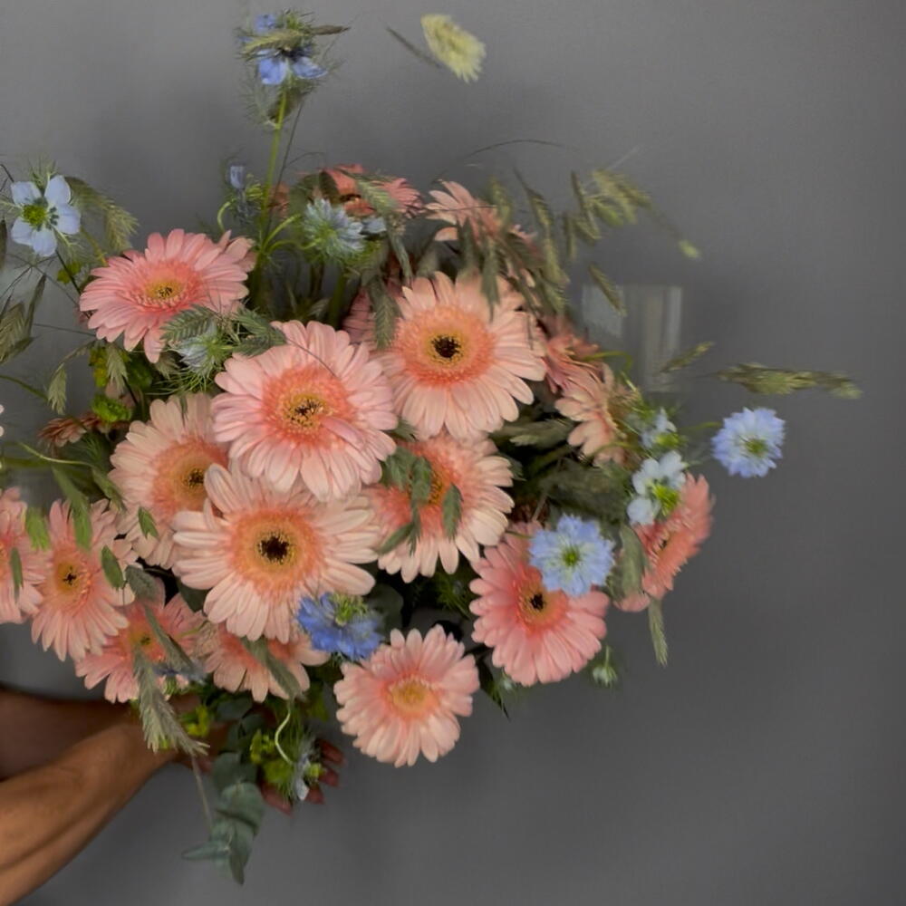 Gerbera - 21 ud. nigella - 10 ud. eucalipto cinerea - 10 ud. chasmantium - 20 ud.