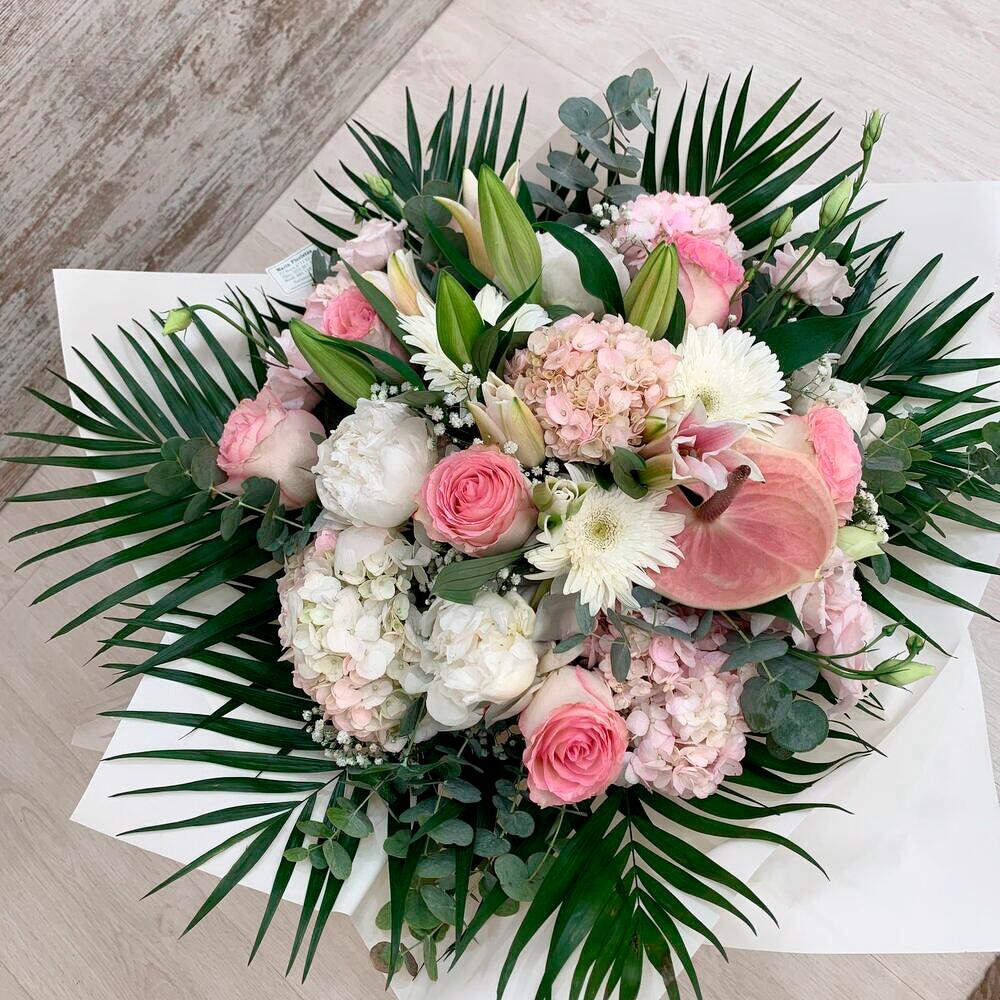 Este ramo elegante y delicado en tonos pastel es una obra de arte floral que evoca pureza, ternura y sofisticación. Con una mezcla armónica de rosas, peonías, hortensias, lirios y anthuriums, está pensado para impresionar con su frescura y belleza natural. Las gerberas blancas aportan luz, mientras que el follaje tropical y el eucalipto enmarcan la composición con un estilo moderno y equilibrado. Ideal para aniversarios, nacimientos, celebraciones especiales o simplemente para emocionar a quien lo reciba. Cambia el agua del florero cada dos días y recorta los tallos en diagonal. Evita exponer el ramo directamente al sol o al calor excesivo. Retira las flores marchitas y añade conservante floral si es posible para extender su frescura.