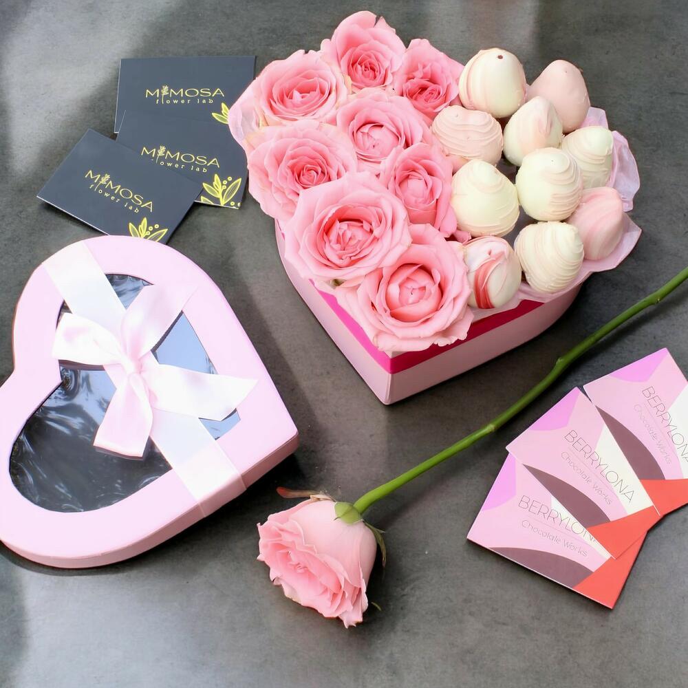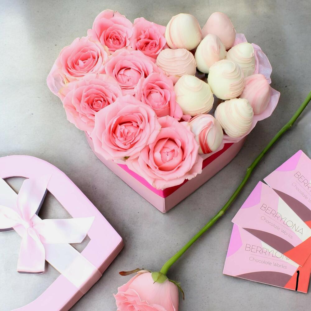 rosas - 8 ud. fresas cubiertas de chocolate - 10 ud.
