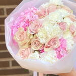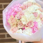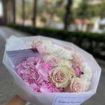Delicadeza y sofisticación. Es una pieza diseñada para transmitir ternura y alegría en cualquier ocasión. Este diseño exclusivo combina texturas y volúmenes únicos: • 11 Rosas Rosadas Pastel. • 2 Hortensias Fucsias: Aportan un toque vibrante y una estructura pomposa espectacular. • 12 Claveles Blancos: Representan la pureza y brindan una durabilidad excepcional al arreglo. ¿Por qué elegirlo? Presentado en un delicado envoltorio premium que resalta la frescura de cada pétalo, este ramo es ideal para aniversarios, cumpleaños o simplemente para iluminar el día de alguien querido. Su paleta de colores suaves lo convierte en un elemento decorativo perfecto para cualquier espacio.
