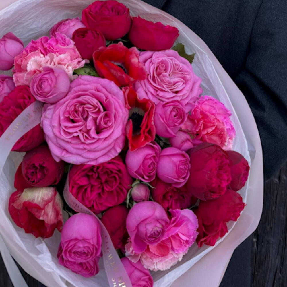 Anemone - 2 ud. rosa roja piano - 4 ud. clavel - 3 ud. rosa ramificada - 3 ud. rosa rosada - 2 ud.