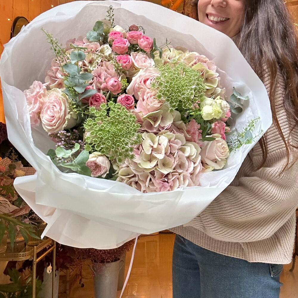 Spray rose - 5 ud. rose - 7 ud. amy - 3 ud. hydragea - 4 ud.