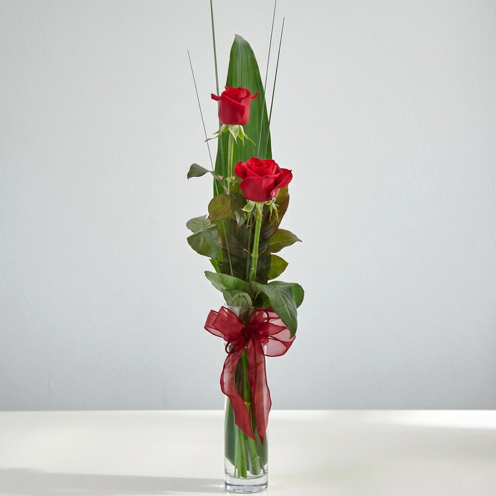rosa roja - 2 ud. hoja de aspidistra - 1 ud. vaso - 1 ud.