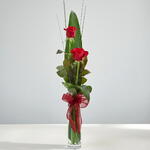 Un arreglo minimalista y elegante que destaca la belleza clásica de las rosas rojas en una composición vertical moderna. Su diseño estilizado, acompañado de hojas verdes estructuradas, crea una pieza sofisticada y delicada. Ideal para expresar amor, respeto o admiración con un toque contemporáneo. Perfecto para ocasiones como Día de San Valentín, aniversarios, detalles románticos o regalos formales. La cinta decorativa añade un acabado refinado que realza su presentación. Para mantener su frescura, cambia el agua cada 2 días, corta los tallos en diagonal y conserva el arreglo en un lugar fresco, lejos del sol directo y corrientes de aire. Retira hojas o pétalos marchitos para prolongar su duración.