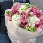 Alstroemeria - 4 ud. ranunculus - 7 ud. hortensia - 3 ud. orquídea cinmbidium - 11 ud.