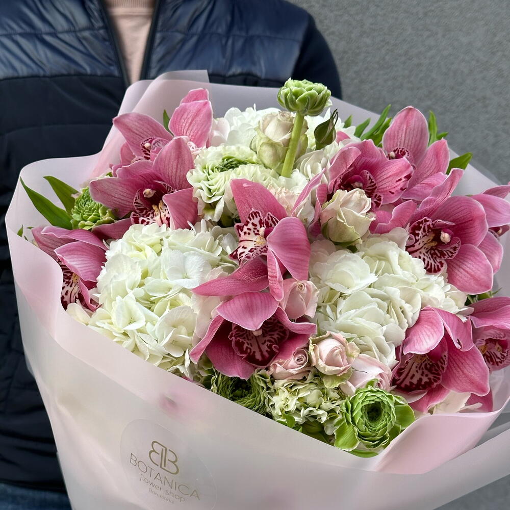 Alstroemeria - 4 ud. ranunculus - 7 ud. hortensia - 3 ud. orquídea cinmbidium - 11 ud.