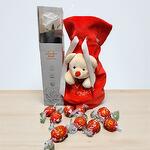 rosa preservada - 1 ud. bombones - 9 ud. saquito de peluche con osito - 1 ud.