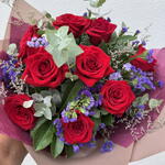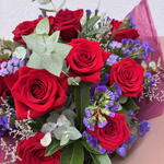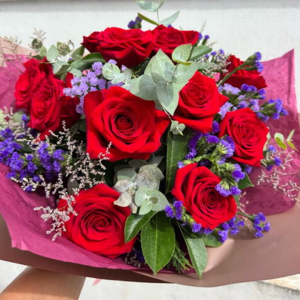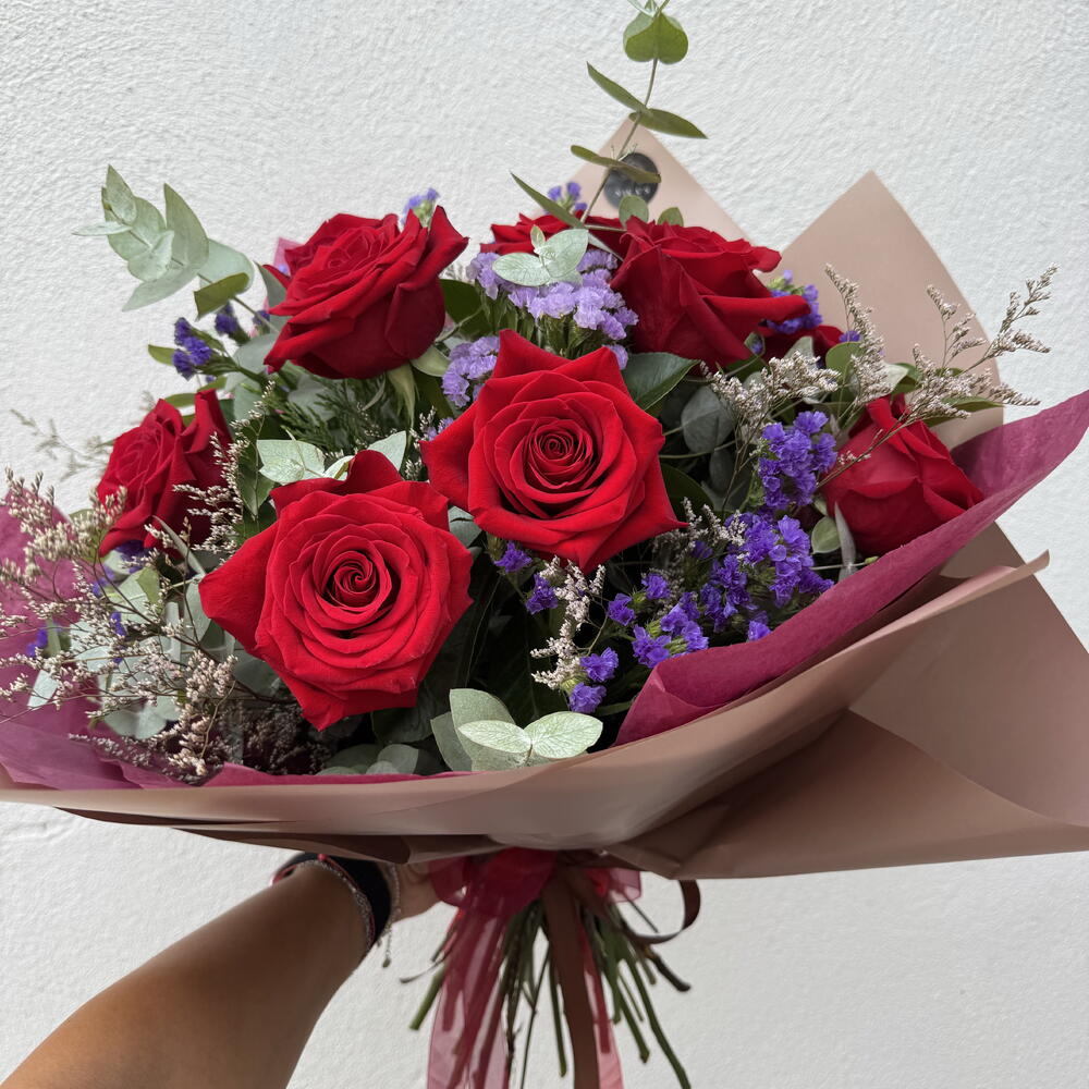 Statice - 5 ud. Limonium - 4 ud. greenery mix - 1 ud. tallos de rosas rojas - 12 ud.