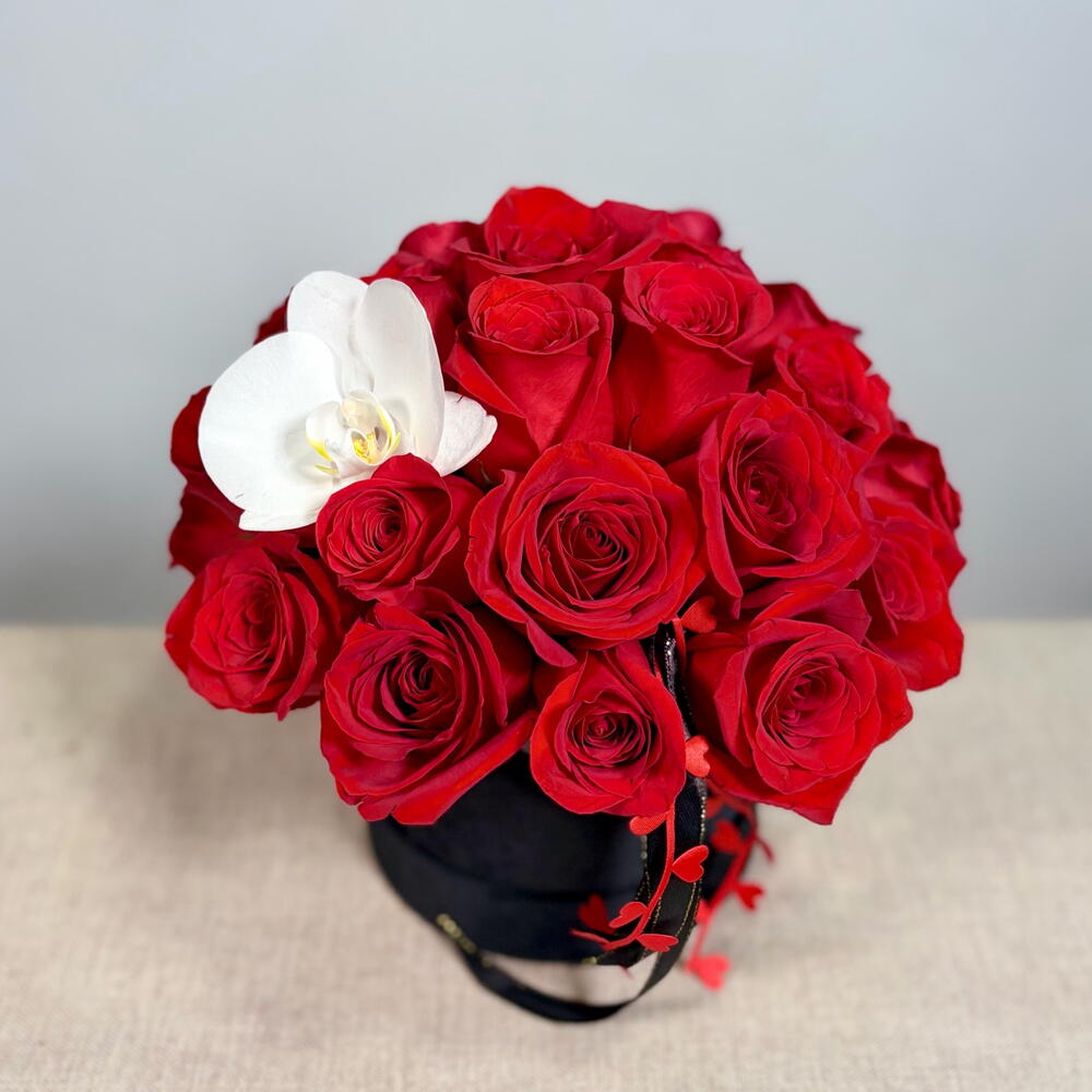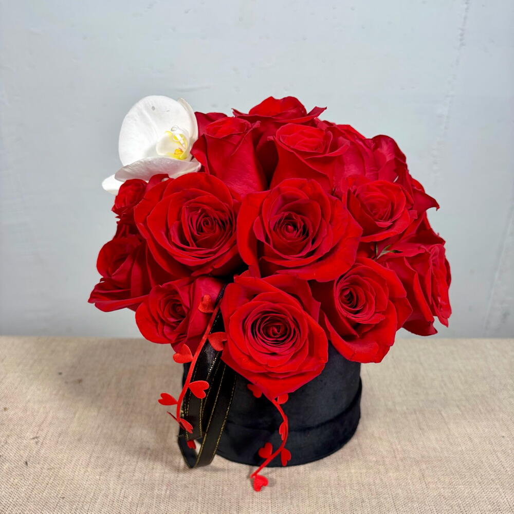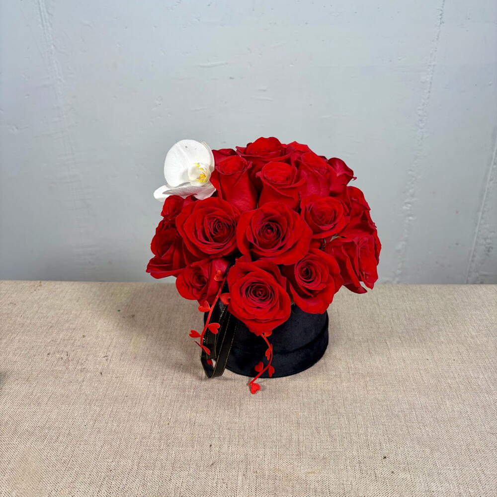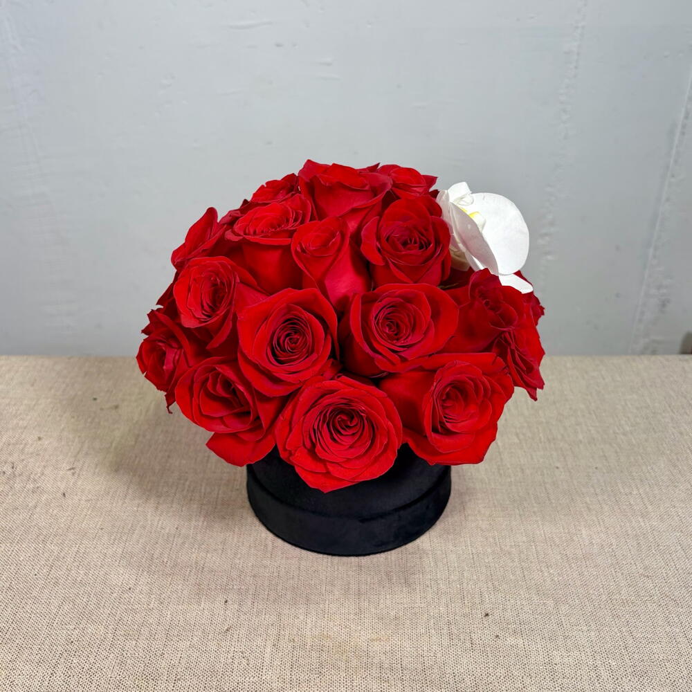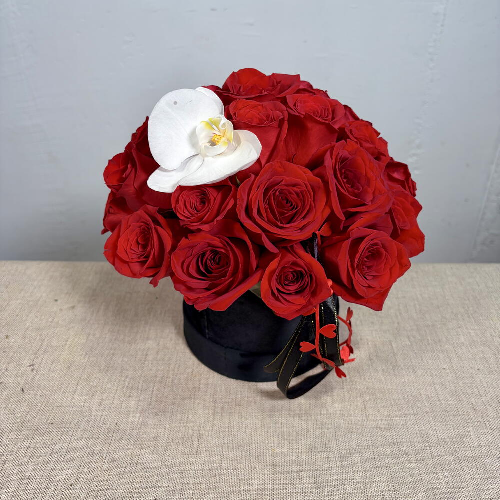 La Petite Luxe (Caja boutique de 25 rosas rojas y orquídeas) cumpleaños, te amo, porque sí, gracias, regalo romántico