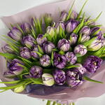 Espectacular bouquet compuesto por 50 tulipanes morados premium, símbolo de admiración, respeto y elegancia femenina. Su intenso color violeta transmite sofisticación y sensibilidad, convirtiéndolo en un regalo perfecto para celebrar el 8 de Marzo – Día Internacional de la Mujer. La abundancia de flores crea un efecto voluminoso y armonioso, mientras que el envoltorio en tonos suaves realza la belleza natural del ramo. Ideal para homenajear a madres, hermanas, amigas, compañeras o mujeres especiales que inspiran cada día. Un detalle elegante, moderno y lleno de significado para celebrar su fuerza y su esencia única en el Día de la Mujer. 💜🌷