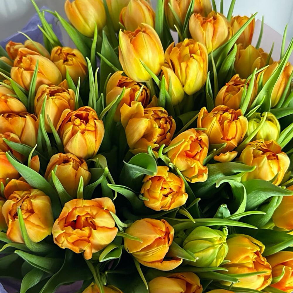 Ramo 50 Tulipanes Dobles Naranja Dorado – Bouquet Primaveral