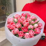 🌷 Ramo de 23 tulipanes rosados premium Un bouquet elegante y delicado compuesto por 23 tulipanes rosados de alta calidad, cuidadosamente seleccionados para crear una composición natural y armoniosa. Cada flor tiene una forma y apertura diferente, lo que aporta movimiento, volumen y un estilo orgánico al ramo. Los tulipanes presentan distintas tonalidades de rosa — desde matices suaves y empolvados hasta tonos más intensos — creando un efecto romántico y sofisticado. El ramo está envuelto en papel translúcido premium que realza la belleza de las flores y le da un acabado moderno y refinado. 💗 Ideal para: • Cumpleaños • Aniversarios • Día de la Madre • Sorpresas románticas • Agradecimientos especiales Cada tulipán es único, por lo que el ramo luce natural y ligeramente asimétrico, como recién recogido del jardín, pero con un acabado profesional de floristería. ✨ Un detalle lleno de frescura, ternura y elegancia que transmite emociones sinceras.