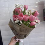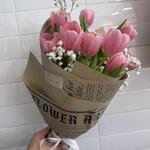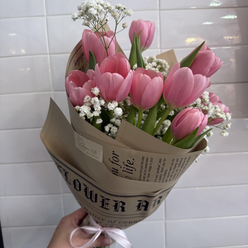 paniculata blanca - 4 ud. tulipanes (puede variar el tono) - 10 ud. papel coreano y cintas - 1 ud.