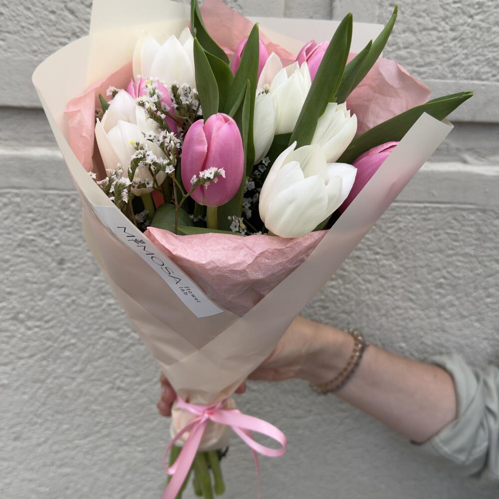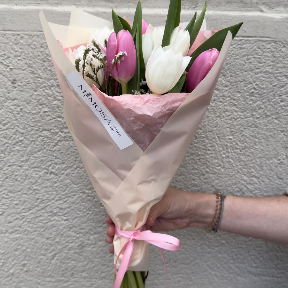 Tulips - 11 ud. Limonium - 1 ud. packaging design - 2 ud.