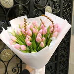 Este ramo de tulipanes rosados es la personificación de la delicadeza y la elegancia. Cada flor, cuidadosamente seleccionada, resalta con su suave tonalidad pastel, acompañada de hojas verdes frescas que aportan un contraste vibrante. Los detalles de ramas decorativas añaden un toque rústico y sofisticado, creando un equilibrio perfecto entre la naturalidad y el refinamiento. Ideal para regalar en primavera, como símbolo de renacimiento y amor, o para cualquier ocasión especial que merezca un detalle lleno de frescura y estilo. El envoltorio blanco realza la pureza del diseño y lo convierte en una opción atemporal. Ramo de tulipanes Ramo de tulipanes Ramo de tulipanes